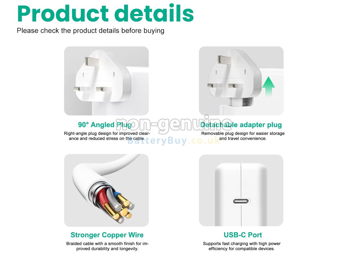 2 Fast Charging: Featuring advanced charging technology, our adapter for Apple 96W 20.5V-4.7A USB-C delivers fast, efficient power to keep you productive, minimizing the time spent tethered to an outlet.