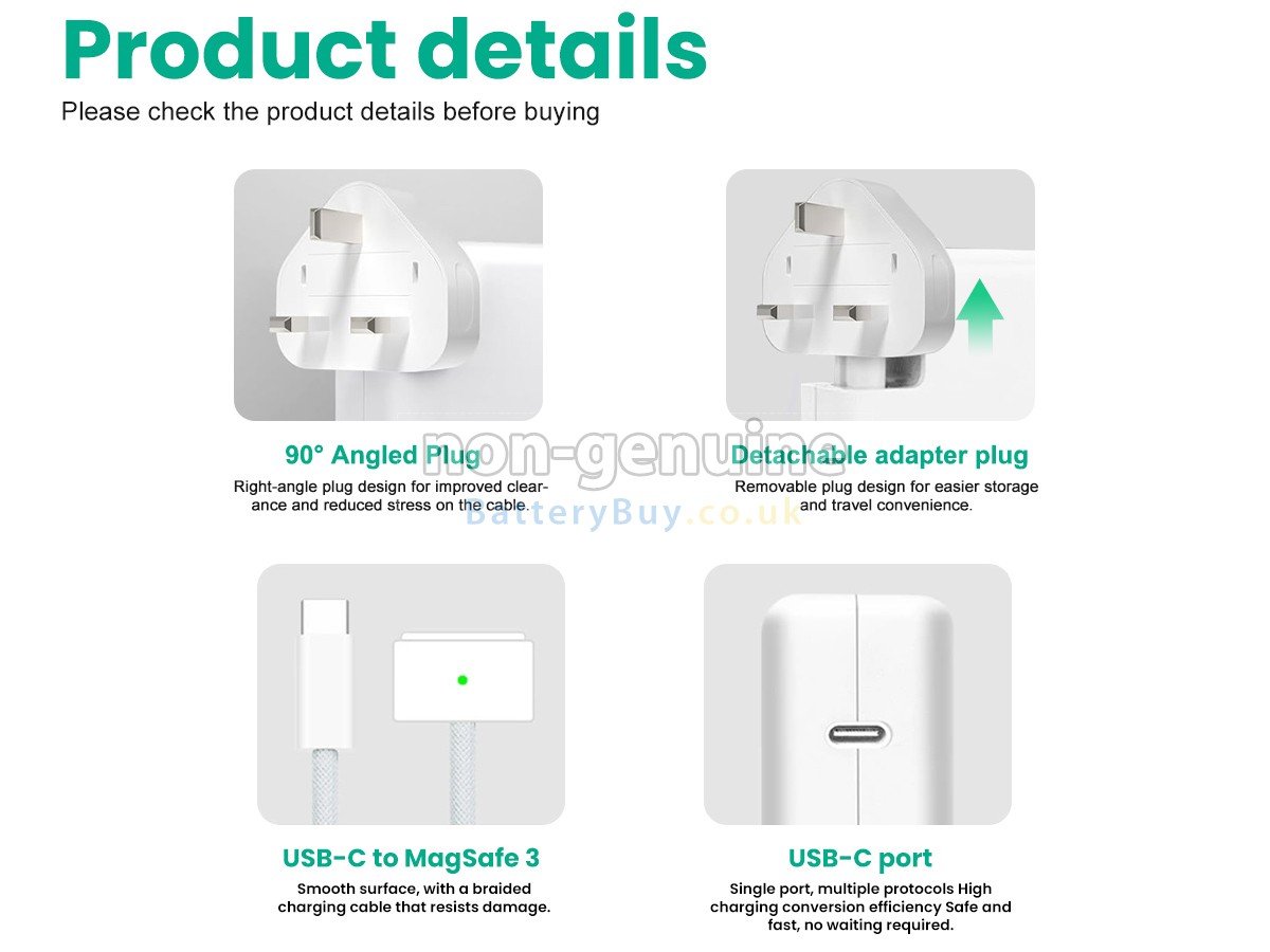 2 Fast Charging: Featuring advanced charging technology, our adapter for Apple MK1F3LL/A delivers fast, efficient power to keep you productive, minimizing the time spent tethered to an outlet.