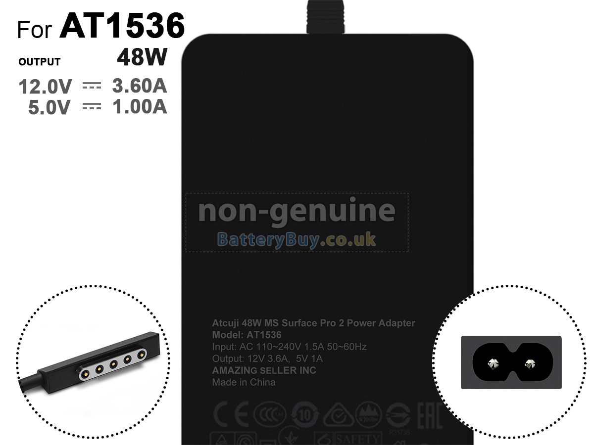 All our high quality replacement adapters for Microsoft 48W SURFACE PRO 2 come with a one-year warranty. Warranty is applicable if the buyer has used the adapter properly in the device and has treated the adapter correctly.