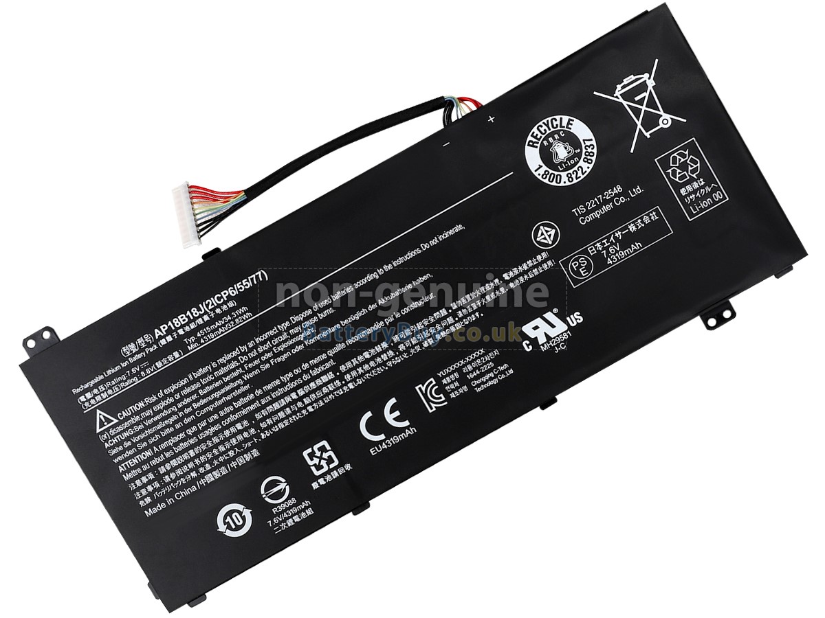 BatteryBuy.co.uk is your best choice of high quality Acer laptop batteries! The brand new 4515mAh(2 cells) replacement Acer AP18B18J(2ICP6/55/77) Li-Polymer battery is made with superior quality cells from Samsung, Panasonic and LG to ensure the best performance. Acer AP18B18J(2ICP6/55/77) battery case is made of non-flammable and durable plastic, which is fire-retarded and non-perishable when dropped from low heights.