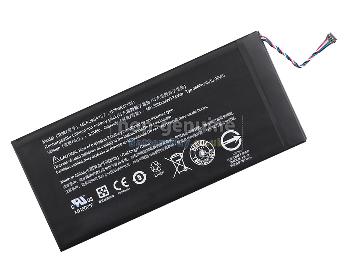BatteryBuy.co.uk is your best choice of high quality Acer laptop batteries! The brand new 3580mAh(1 cells) replacement Acer Iconia One 7 B1-730 TabLET Li-Polymer battery is made with superior quality cells from Samsung, Panasonic and LG to ensure the best performance. Acer Iconia One 7 B1-730 TabLET battery case is made of non-flammable and durable plastic, which is fire-retarded and non-perishable when dropped from low heights.