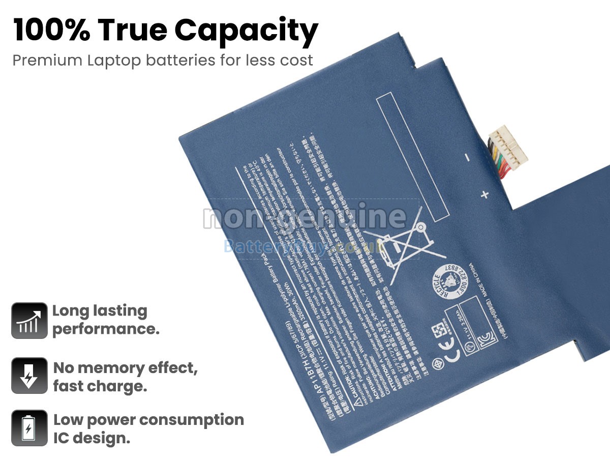 BatteryBuy.co.uk is your best choice of high quality Acer laptop batteries! The brand new 3260mAh(3 cells) replacement Acer Iconia W500P-C62G03NSS Li-Polymer battery is made with superior quality cells from Samsung, Panasonic and LG to ensure the best performance. Acer Iconia W500P-C62G03NSS battery case is made of non-flammable and durable plastic, which is fire-retarded and non-perishable when dropped from low heights.