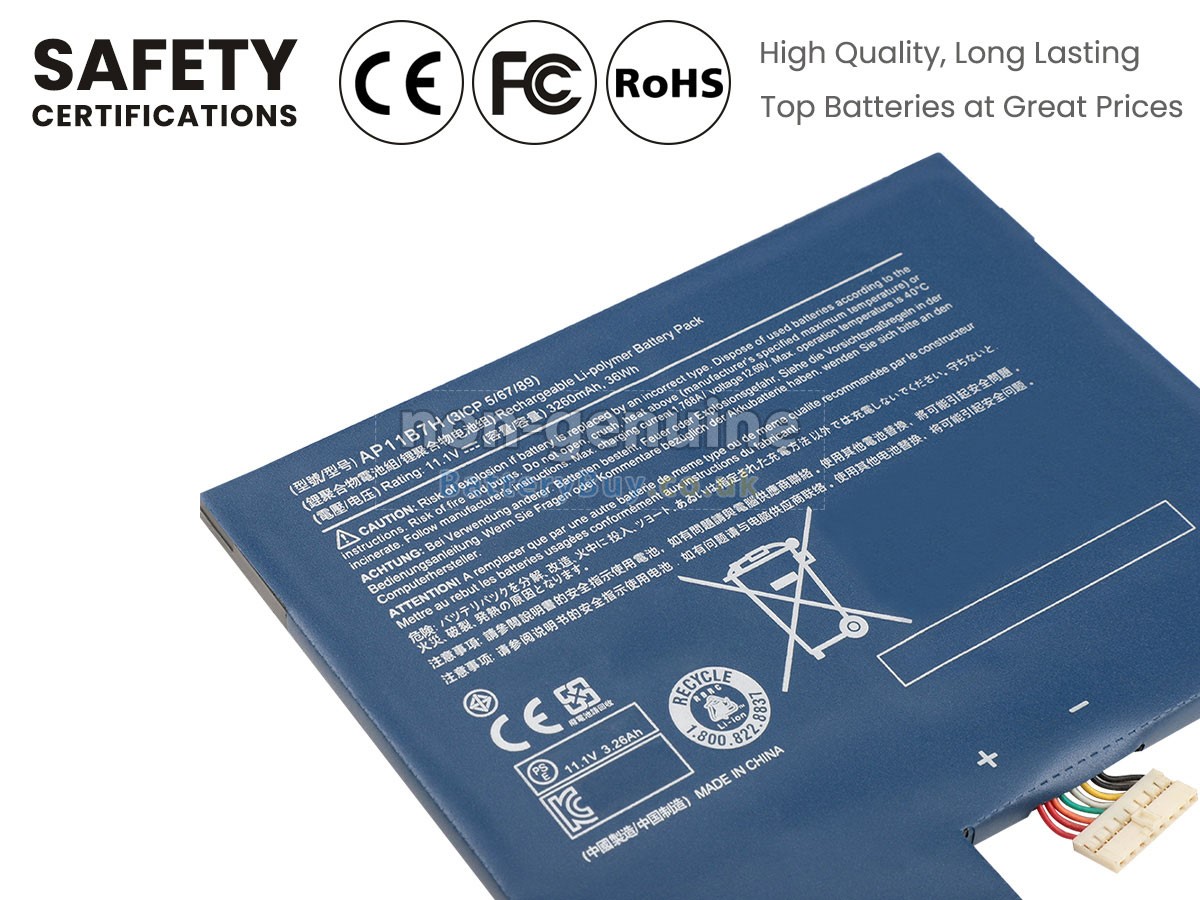 We are very strict with the safety requirements. Every our high-grade replacement battery for Acer Iconia W500P-C62G03NSS laptop has been tested to prove that they can match or surpass original Acer battery performance and be 100% compatible with Original Manufacturer Specifications. In compliance with international standards, they have obtained a series of rigorous safety certifications such as CE, UL, ROHS, ISO9001/9002. In general, this replacement Acer Iconia W500P-C62G03NSS battery can be charged/discharged up to more than 600 cycles.