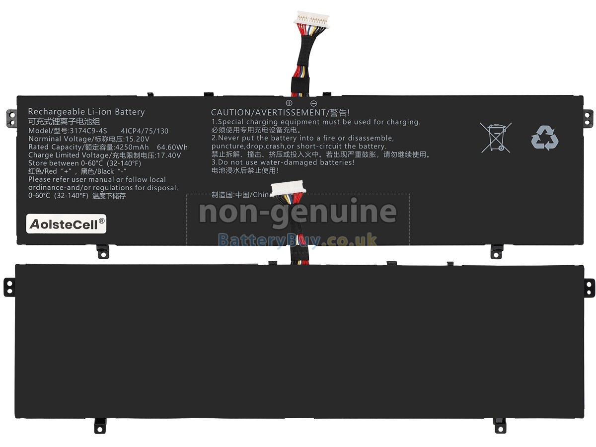 BatteryBuy.co.uk is your best choice of high quality AolsteCell laptop batteries! The brand new 64.6Wh(4 cells) replacement AolsteCell 3174C9-4S Li-Polymer battery is made with superior quality cells from Samsung, Panasonic and LG to ensure the best performance. AolsteCell 3174C9-4S battery case is made of non-flammable and durable plastic, which is fire-retarded and non-perishable when dropped from low heights.
