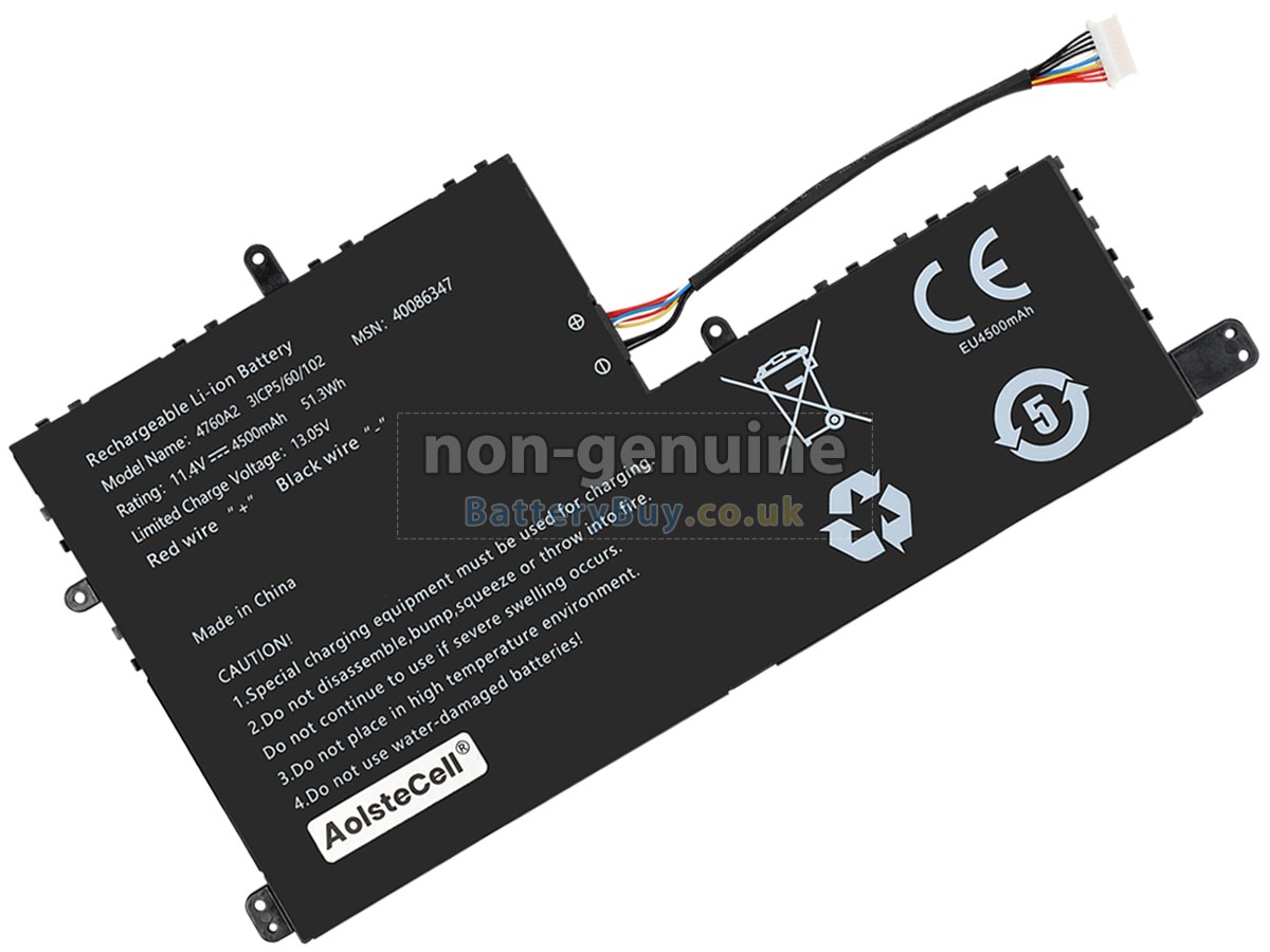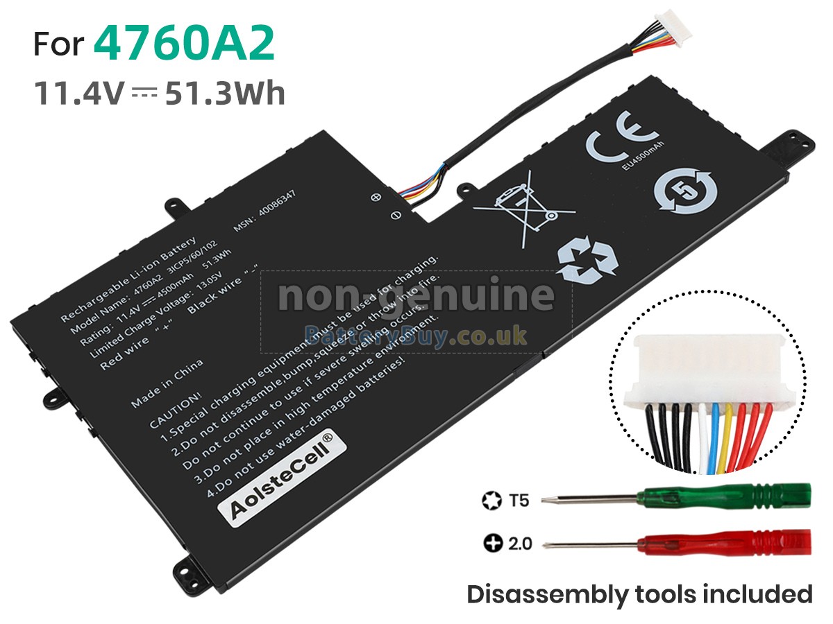BatteryBuy.co.uk is your best choice of high quality AolsteCell laptop batteries! The brand new 51.3Wh(3 cells) replacement AolsteCell 4760A2 Li-Polymer battery is made with superior quality cells from Samsung, Panasonic and LG to ensure the best performance. AolsteCell 4760A2 battery case is made of non-flammable and durable plastic, which is fire-retarded and non-perishable when dropped from low heights.