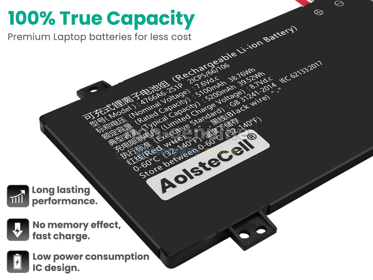 BatteryBuy.co.uk is your best choice of high quality AolsteCell laptop batteries! The brand new 38.76Wh(2 cells) replacement AolsteCell 4766A6-2S1P Li-Polymer battery is made with superior quality cells from Samsung, Panasonic and LG to ensure the best performance. AolsteCell 4766A6-2S1P battery case is made of non-flammable and durable plastic, which is fire-retarded and non-perishable when dropped from low heights.