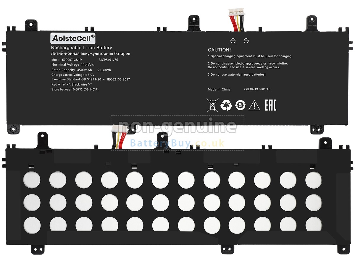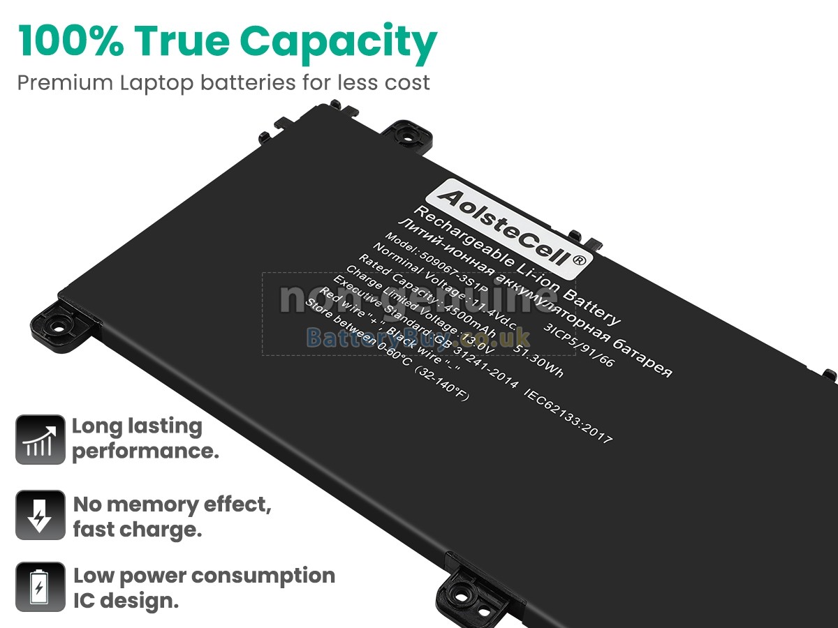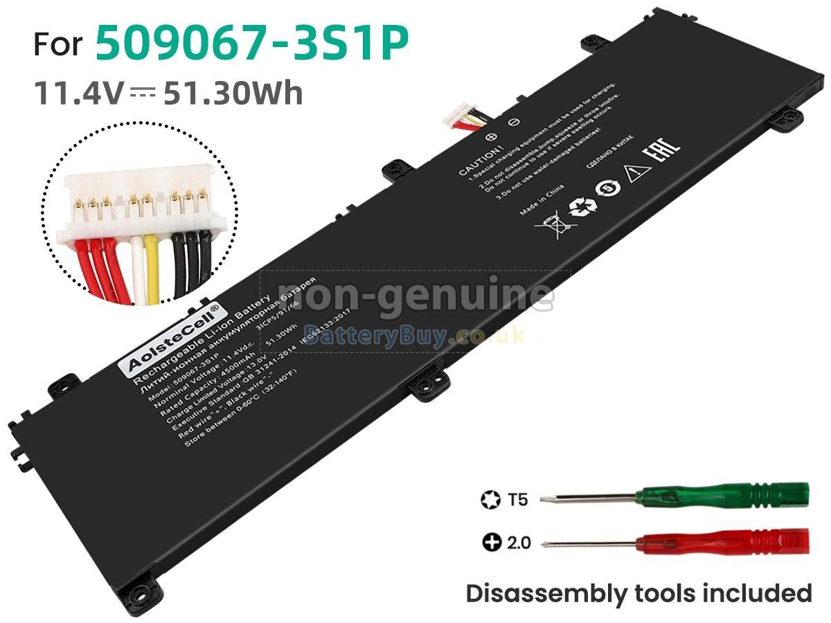 BatteryBuy.co.uk is your best choice of high quality AolsteCell laptop batteries! The brand new 51.3Wh(3 cells) replacement AolsteCell 509067-3S1P Li-Polymer battery is made with superior quality cells from Samsung, Panasonic and LG to ensure the best performance. AolsteCell 509067-3S1P battery case is made of non-flammable and durable plastic, which is fire-retarded and non-perishable when dropped from low heights.