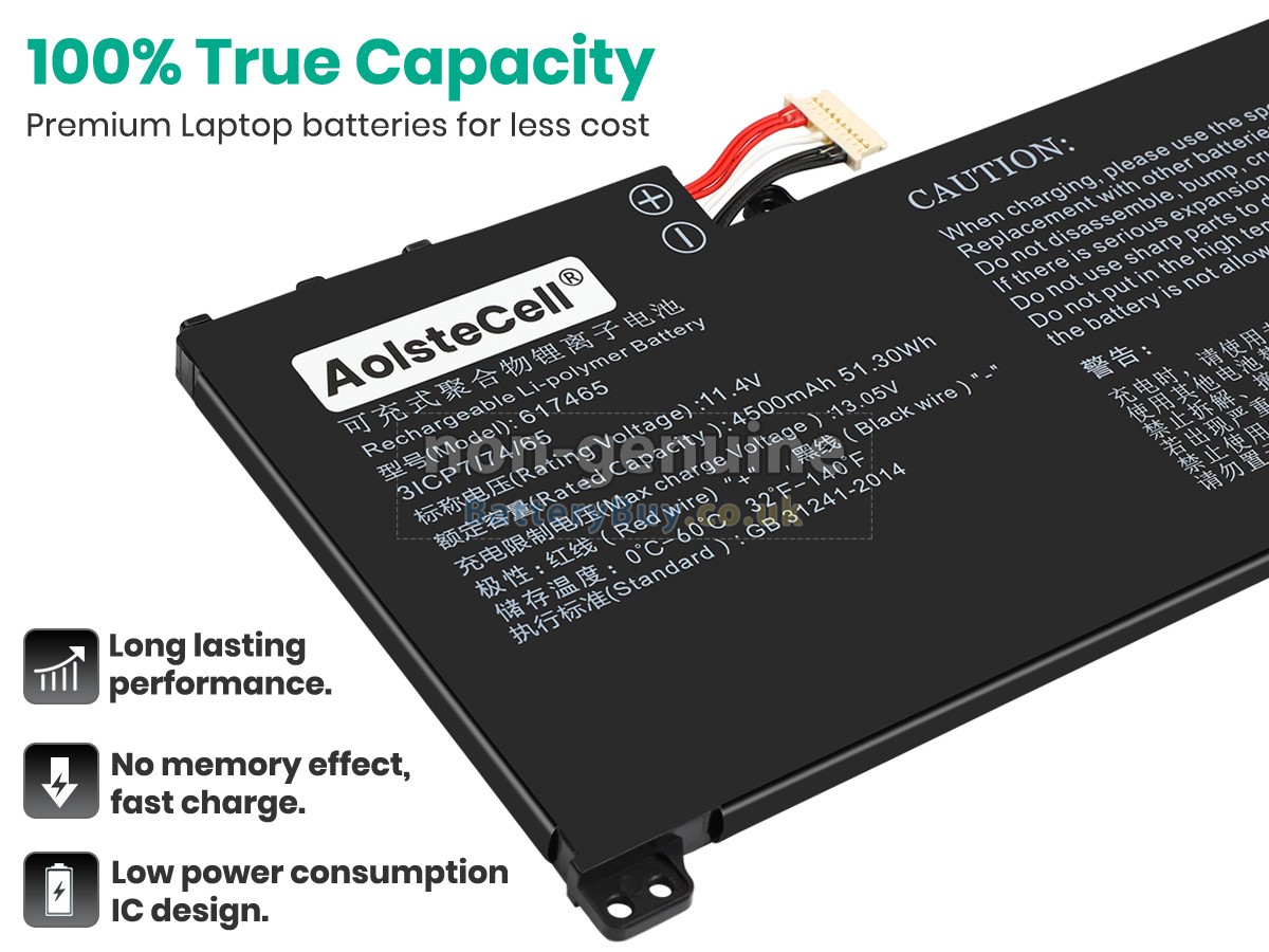 BatteryBuy.co.uk is your best choice of high quality AolsteCell laptop batteries! The brand new 51.3Wh(3 cells) replacement AolsteCell 617465 Li-Polymer battery is made with superior quality cells from Samsung, Panasonic and LG to ensure the best performance. AolsteCell 617465 battery case is made of non-flammable and durable plastic, which is fire-retarded and non-perishable when dropped from low heights.