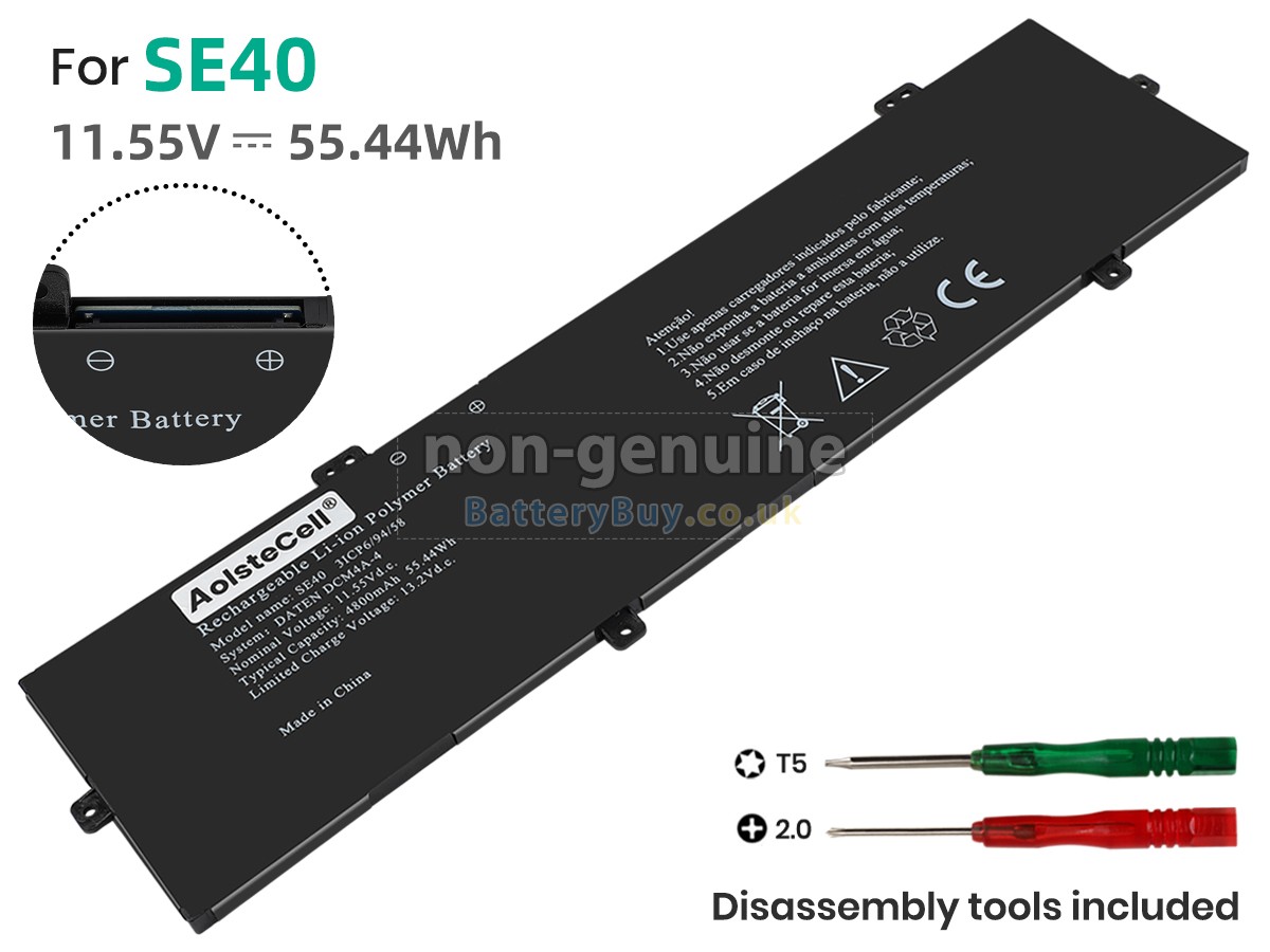BatteryBuy.co.uk is your best choice of high quality AolsteCell laptop batteries! The brand new 55.44Wh(3 cells) replacement AolsteCell SE40 Li-Polymer battery is made with superior quality cells from Samsung, Panasonic and LG to ensure the best performance. AolsteCell SE40 battery case is made of non-flammable and durable plastic, which is fire-retarded and non-perishable when dropped from low heights.