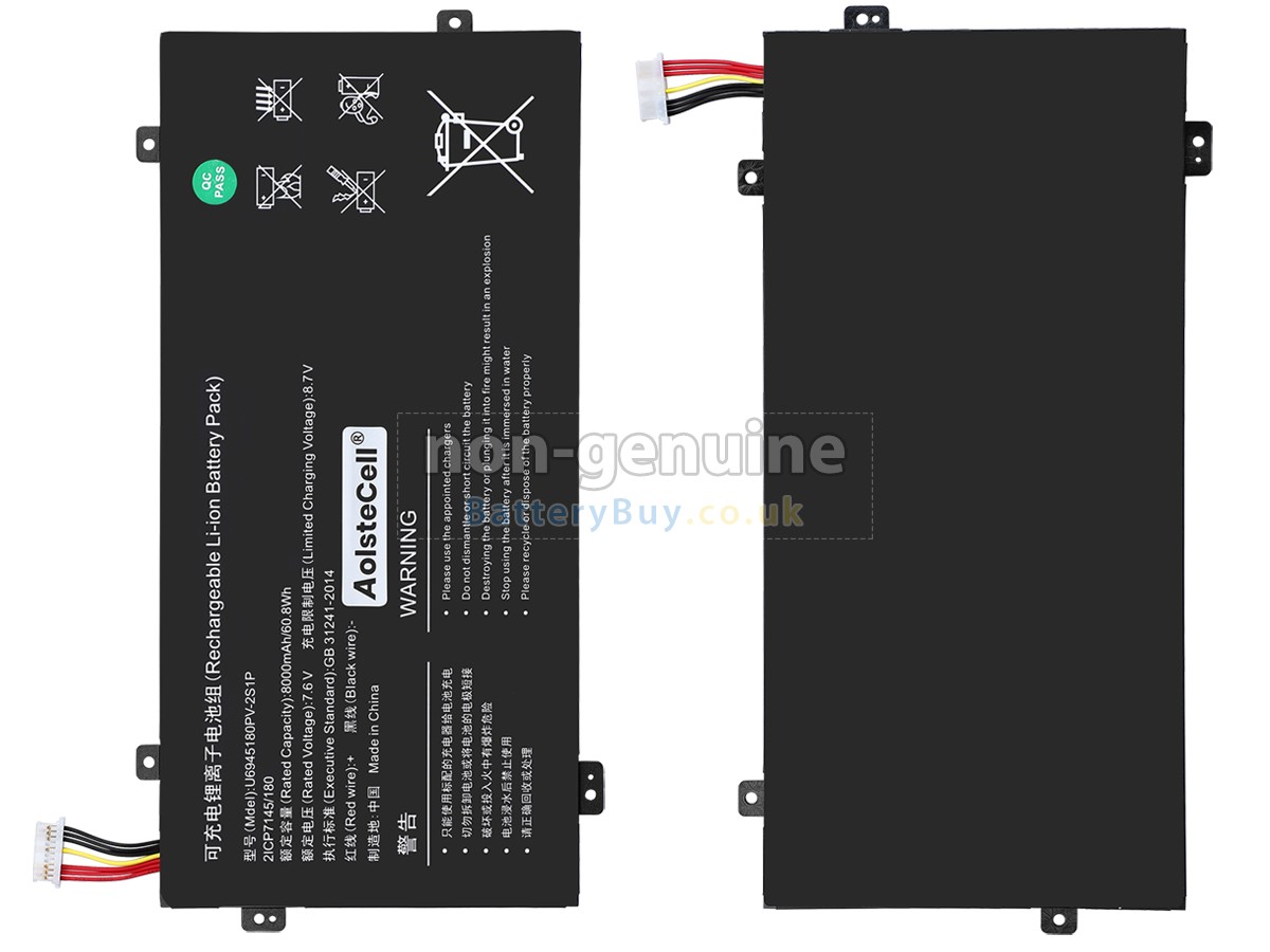 BatteryBuy.co.uk is your best choice of high quality AolsteCell laptop batteries! The brand new 60.8Wh(2 cells) replacement AolsteCell U6945180PV-2S1P Li-ion battery is made with superior quality cells from Samsung, Panasonic and LG to ensure the best performance. AolsteCell U6945180PV-2S1P battery case is made of non-flammable and durable plastic, which is fire-retarded and non-perishable when dropped from low heights.
