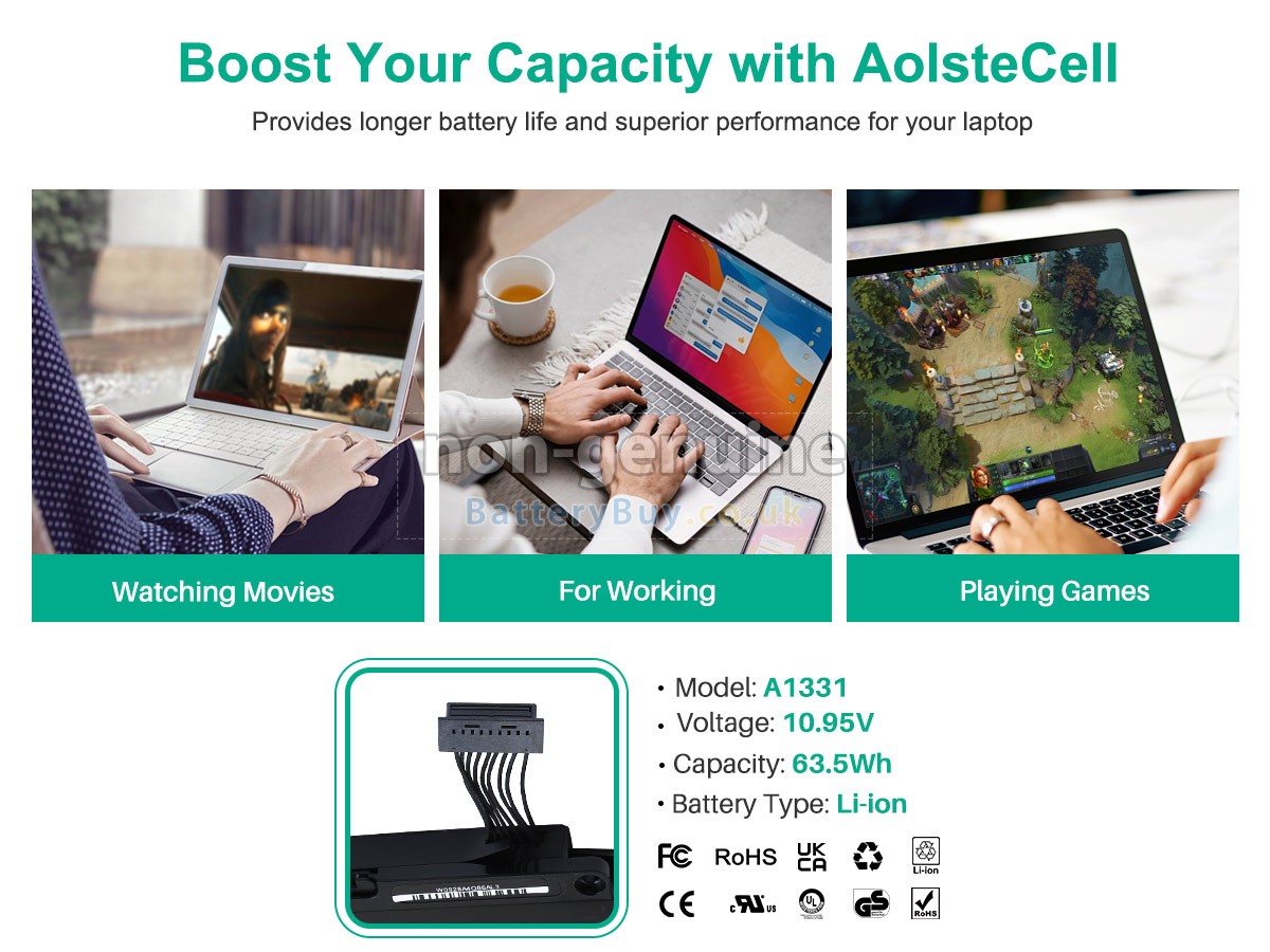 BatteryBuy.co.uk is your best choice of high quality Apple laptop batteries! The brand new 63.5Wh(6 cells) replacement Apple 661-5391 Li-Polymer battery is made with superior quality cells from Samsung, Panasonic and LG to ensure the best performance. Apple 661-5391 battery case is made of non-flammable and durable plastic, which is fire-retarded and non-perishable when dropped from low heights.