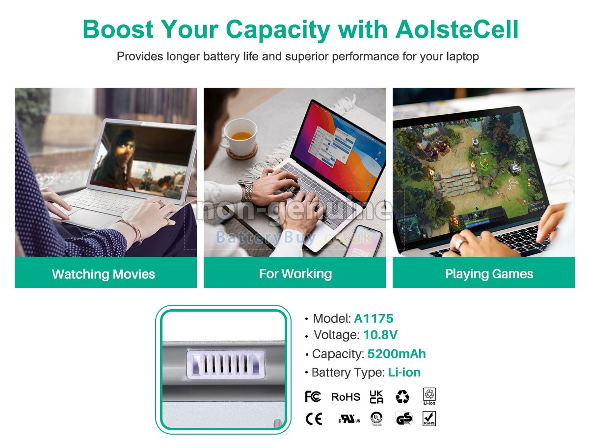 BatteryBuy.co.uk is your best choice of high quality Apple laptop batteries! The brand new 60Wh(6 cells) replacement Apple MA348*/A Li-ion battery is made with superior quality cells from Samsung, Panasonic and LG to ensure the best performance. Apple MA348*/A battery case is made of non-flammable and durable plastic, which is fire-retarded and non-perishable when dropped from low heights.