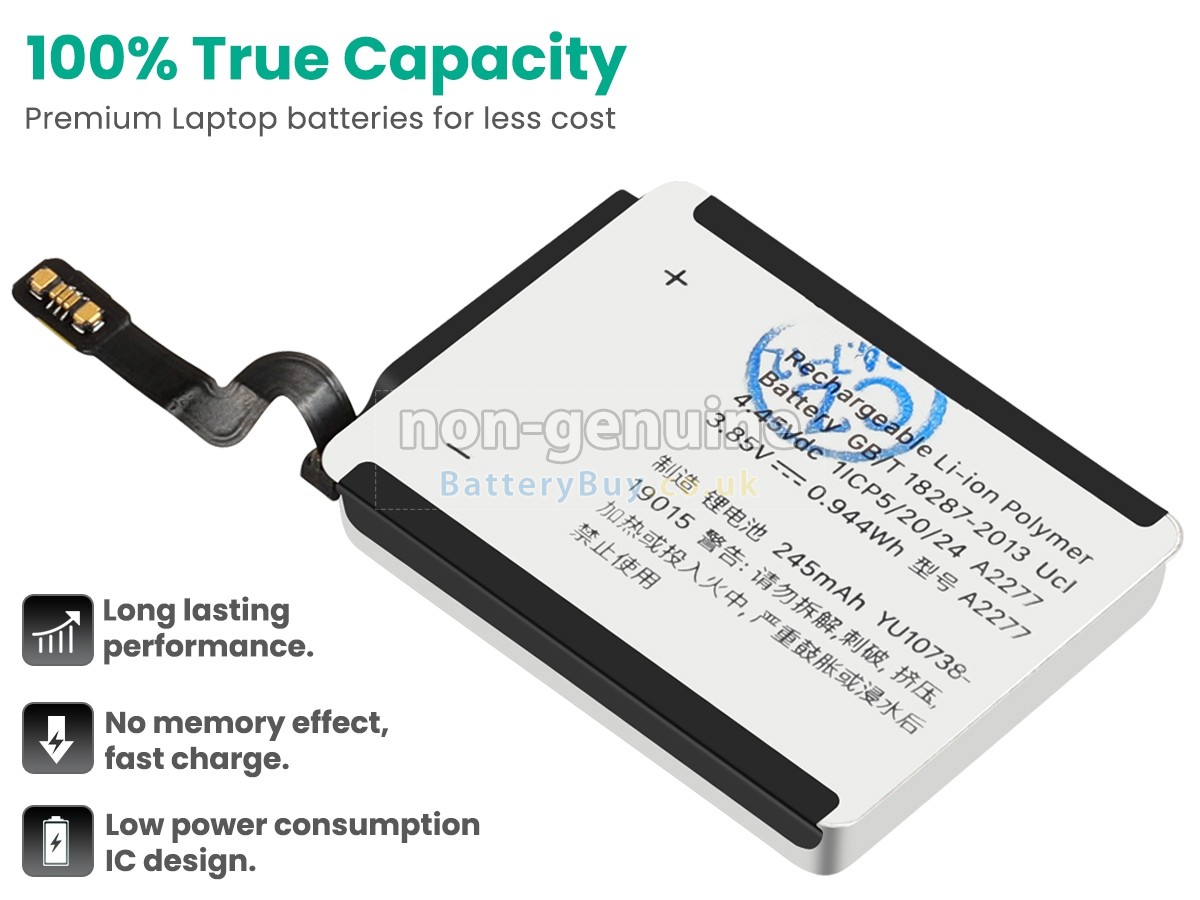 BatteryBuy.co.uk is your best choice of high quality Apple batteries for watches! The brand new 0.944Wh(1 cells) replacement Apple WATCH Series 5 (GPS+CELLULAR)40MM Li-Polymer battery is made with superior quality cells from Samsung, Panasonic and LG to ensure the best performance. Apple WATCH Series 5 (GPS+CELLULAR)40MM battery case is made of non-flammable and durable plastic, which is fire-retarded and non-perishable when dropped from low heights.