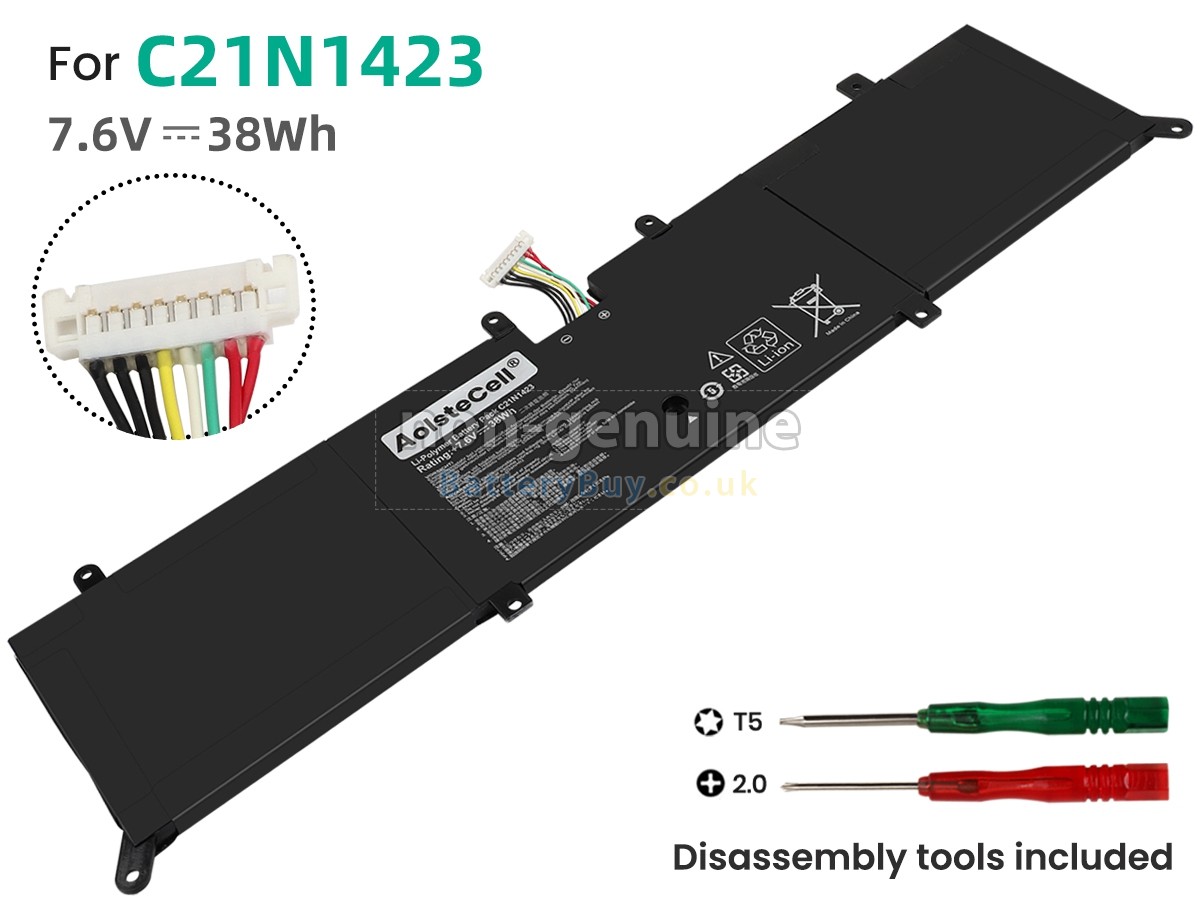 BatteryBuy.co.uk is your best choice of high quality Asus laptop batteries! The brand new 38Wh(2 cells) replacement Asus C21N1423 Li-Polymer battery is made with superior quality cells from Samsung, Panasonic and LG to ensure the best performance. Asus C21N1423 battery case is made of non-flammable and durable plastic, which is fire-retarded and non-perishable when dropped from low heights.