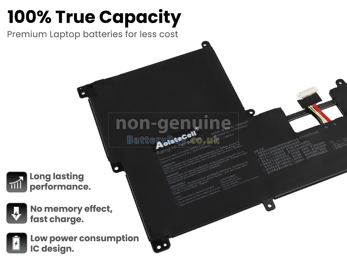 BatteryBuy.co.uk is your best choice of high quality Asus laptop batteries! The brand new 46Wh(4 cells) replacement Asus C22N1623 Li-Polymer battery is made with superior quality cells from Samsung, Panasonic and LG to ensure the best performance. Asus C22N1623 battery case is made of non-flammable and durable plastic, which is fire-retarded and non-perishable when dropped from low heights.