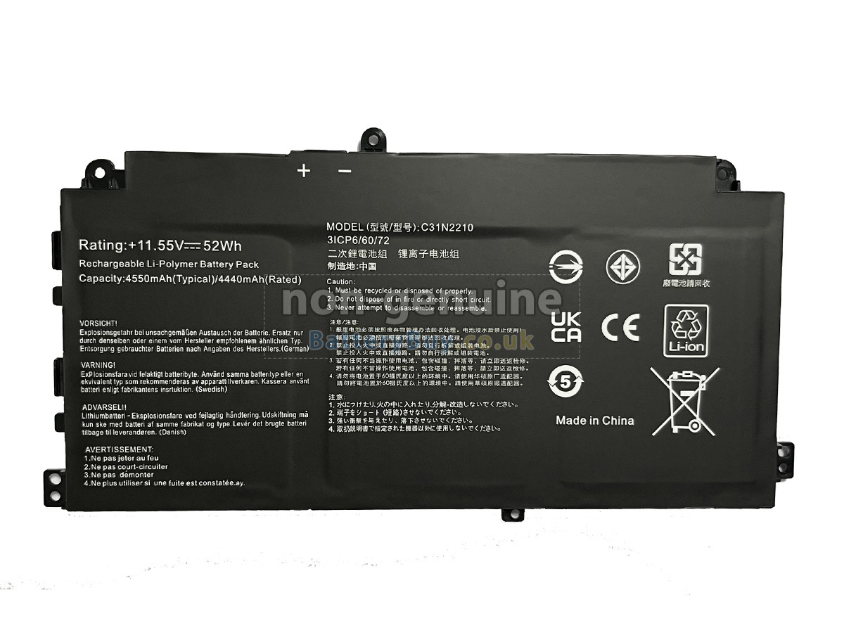 BatteryBuy.co.uk is your best choice of high quality Asus laptop batteries! The brand new 52Wh(3 cells) replacement Asus C31N2210 Li-Polymer battery is made with superior quality cells from Samsung, Panasonic and LG to ensure the best performance. Asus C31N2210 battery case is made of non-flammable and durable plastic, which is fire-retarded and non-perishable when dropped from low heights.