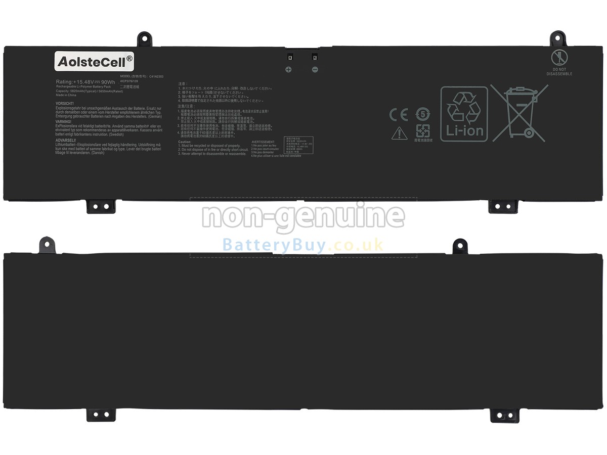 BatteryBuy.co.uk is your best choice of high quality Asus laptop batteries! The brand new 90Wh(4 cells) replacement Asus Rog ZEPHYRUS G16 GU605MY-QR118X Li-Polymer battery is made with superior quality cells from Samsung, Panasonic and LG to ensure the best performance. Asus Rog ZEPHYRUS G16 GU605MY-QR118X battery case is made of non-flammable and durable plastic, which is fire-retarded and non-perishable when dropped from low heights.