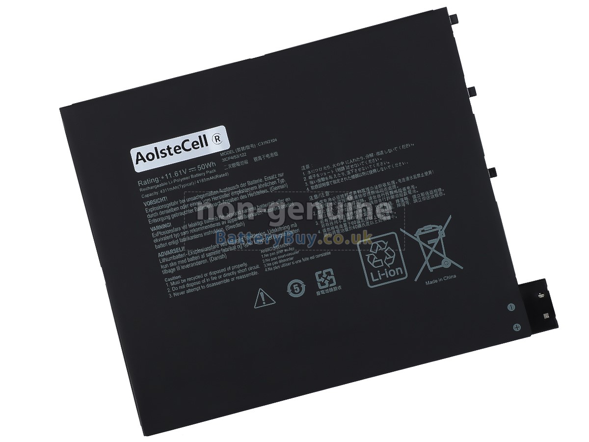 BatteryBuy.co.uk is your best choice of high quality Asus laptop batteries! The brand new 50Wh(3 cells) replacement Asus VivoBook 13 SLATE OLED T3300KA Li-Polymer battery is made with superior quality cells from Samsung, Panasonic and LG to ensure the best performance. Asus VivoBook 13 SLATE OLED T3300KA battery case is made of non-flammable and durable plastic, which is fire-retarded and non-perishable when dropped from low heights.
