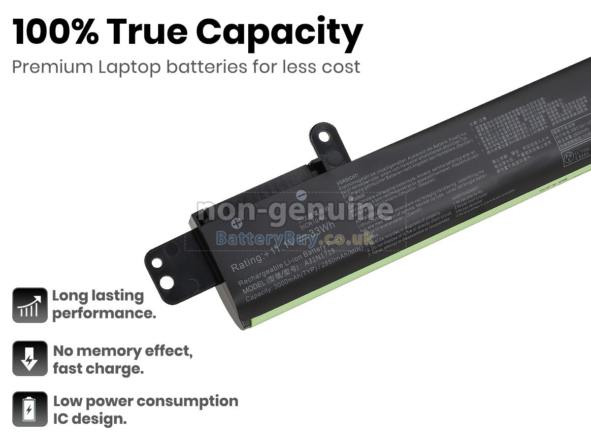 BatteryBuy.co.uk is your best choice of high quality Asus laptop batteries! The brand new 33Wh(3 cells) replacement Asus X507UF-1C Li-ion battery is made with superior quality cells from Samsung, Panasonic and LG to ensure the best performance. Asus X507UF-1C battery case is made of non-flammable and durable plastic, which is fire-retarded and non-perishable when dropped from low heights.