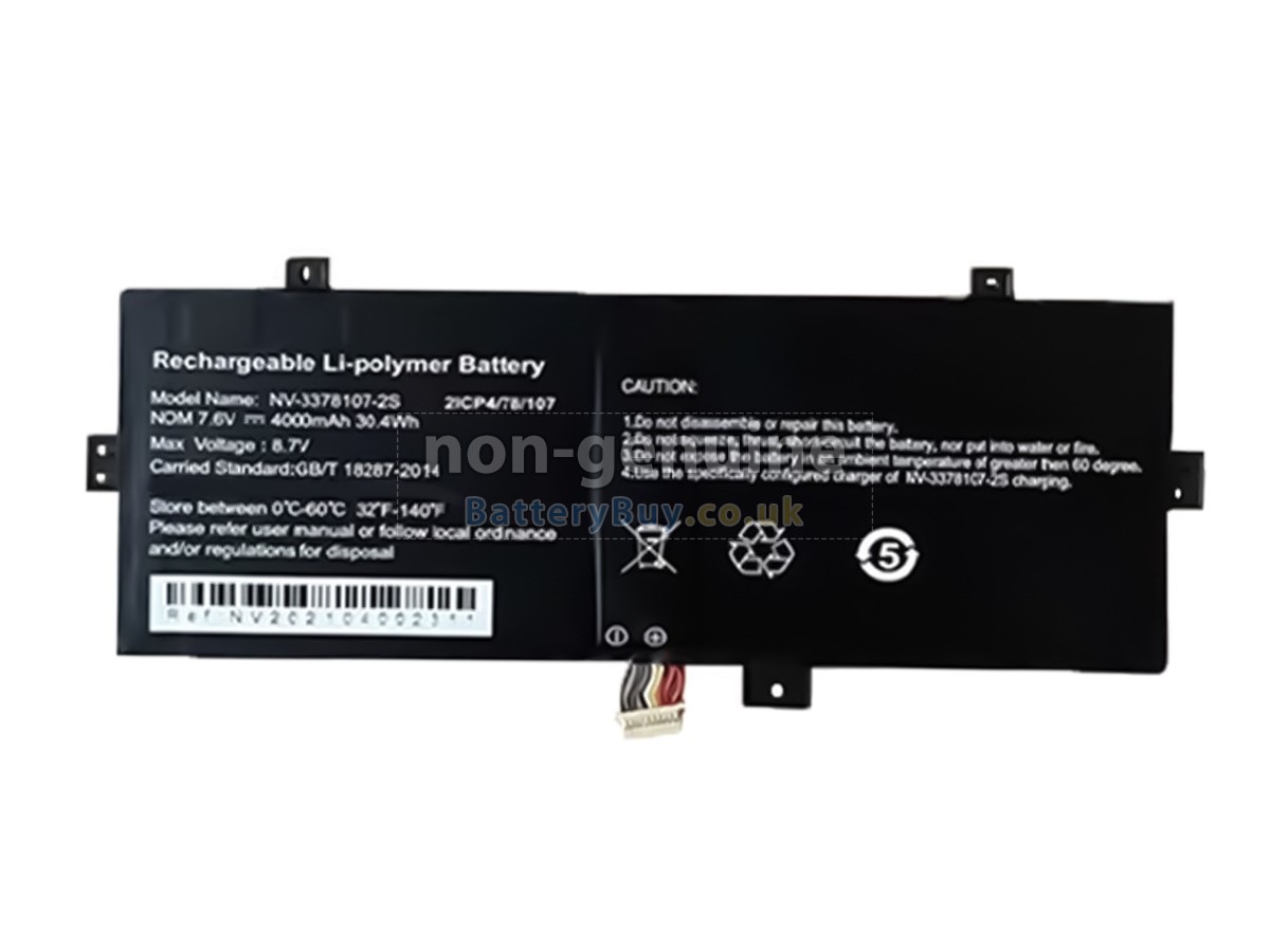BatteryBuy.co.uk is your best choice of high quality AXIOO laptop batteries! The brand new 30.4Wh(2 cells) replacement AXIOO NV-3378107-2S Li-Polymer battery is made with superior quality cells from Samsung, Panasonic and LG to ensure the best performance. AXIOO NV-3378107-2S battery case is made of non-flammable and durable plastic, which is fire-retarded and non-perishable when dropped from low heights.