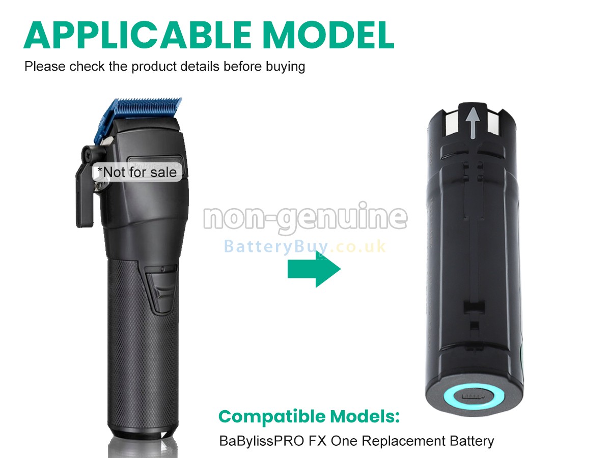 BatteryBuy.co.uk is your best choice of high quality BaBylissPro batteries! The brand new 3200mAh(1 cells) replacement BaBylissPro FXONE Li-ion battery is made with superior quality cells from Samsung, Panasonic and LG to ensure the best performance. BaBylissPro FXONE battery case is made of non-flammable and durable plastic, which is fire-retarded and non-perishable when dropped from low heights.