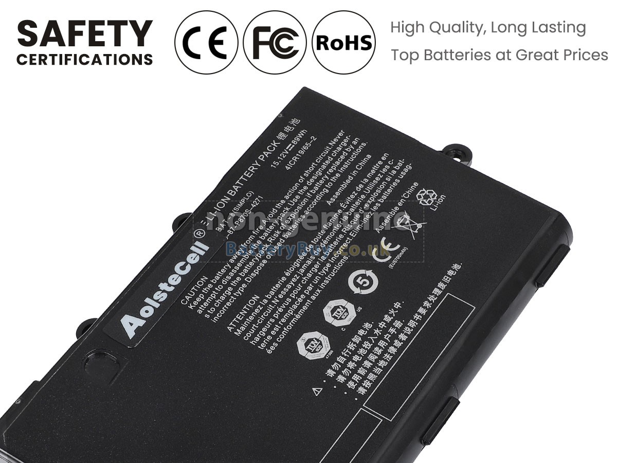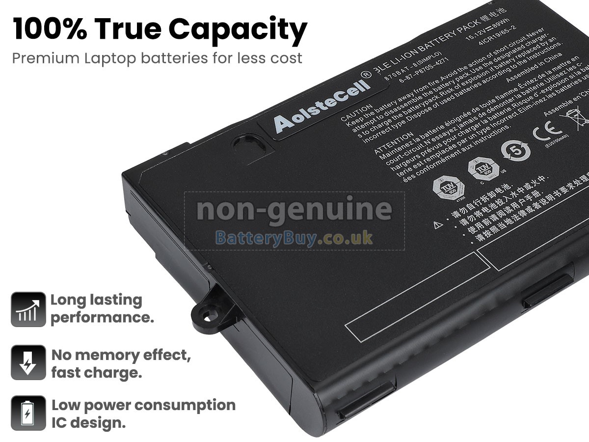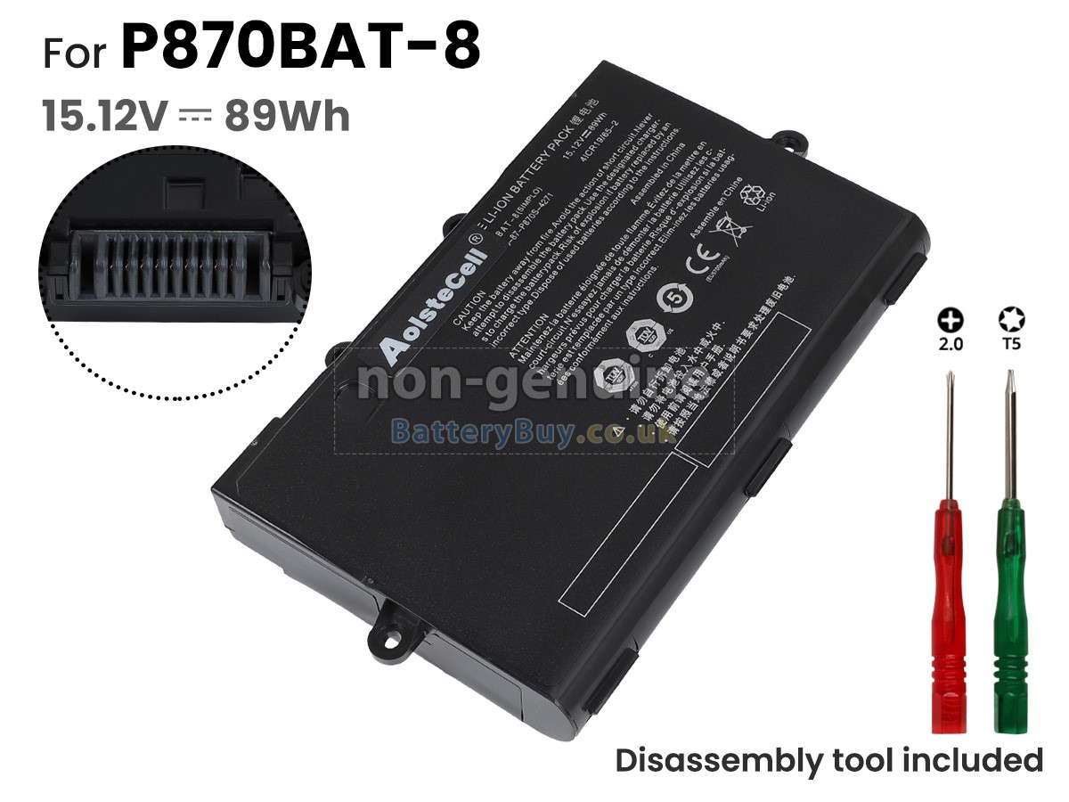 BatteryBuy.co.uk is your best choice of high quality Clevo laptop batteries! The brand new 89Wh(8 cells) replacement Clevo 6-87-P870S-4272 Li-ion battery is made with superior quality cells from Samsung, Panasonic and LG to ensure the best performance. Clevo 6-87-P870S-4272 battery case is made of non-flammable and durable plastic, which is fire-retarded and non-perishable when dropped from low heights.