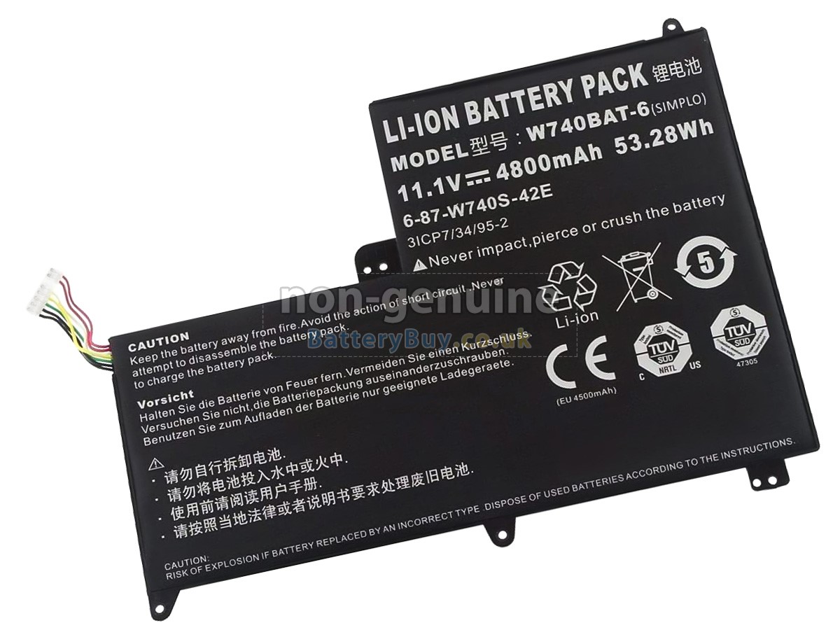 BatteryBuy.co.uk is your best choice of high quality Clevo laptop batteries! The brand new 53.28Wh(3 cells) replacement Clevo 6-87-W740S-42E Li-Polymer battery is made with superior quality cells from Samsung, Panasonic and LG to ensure the best performance. Clevo 6-87-W740S-42E battery case is made of non-flammable and durable plastic, which is fire-retarded and non-perishable when dropped from low heights.