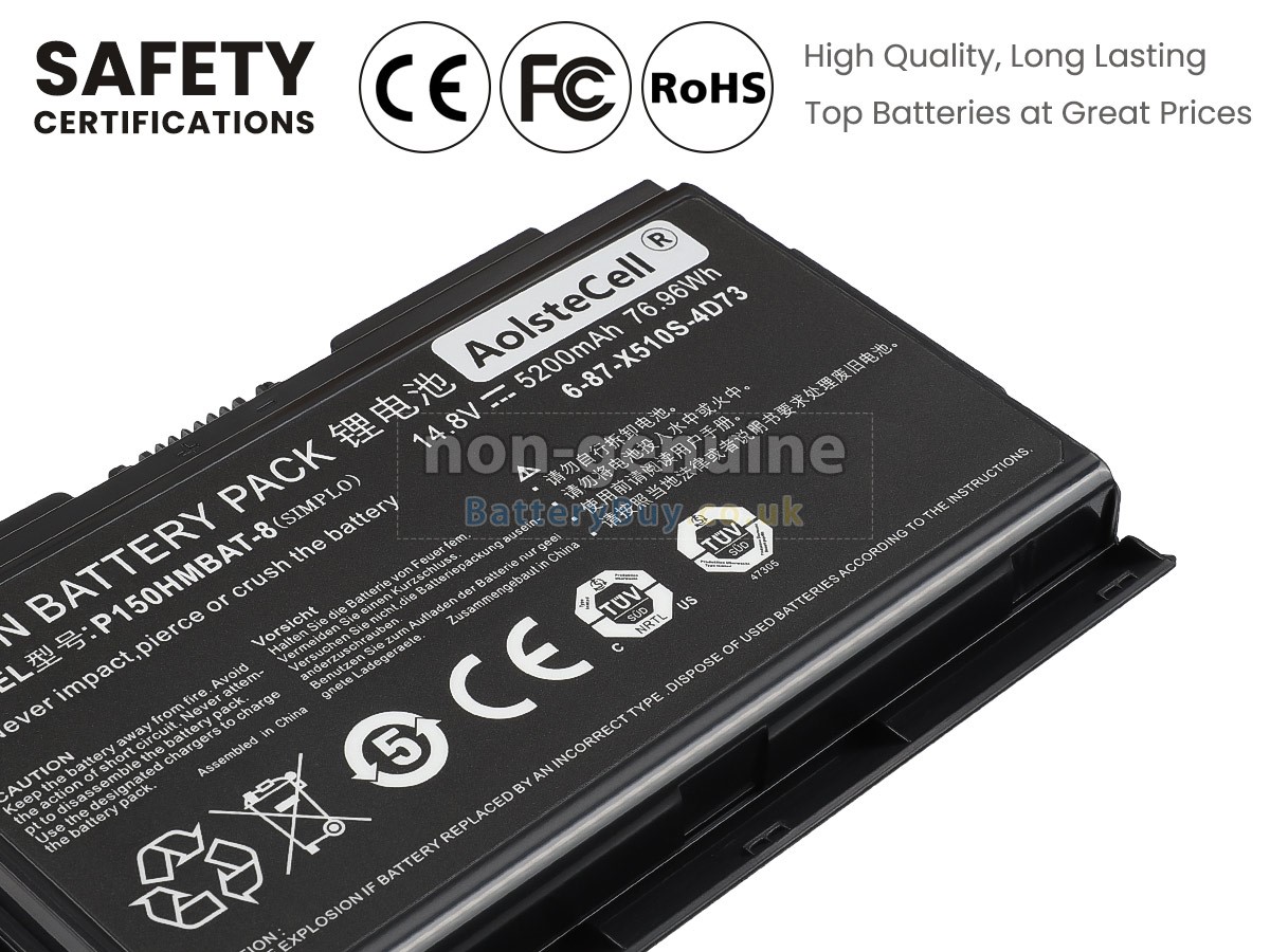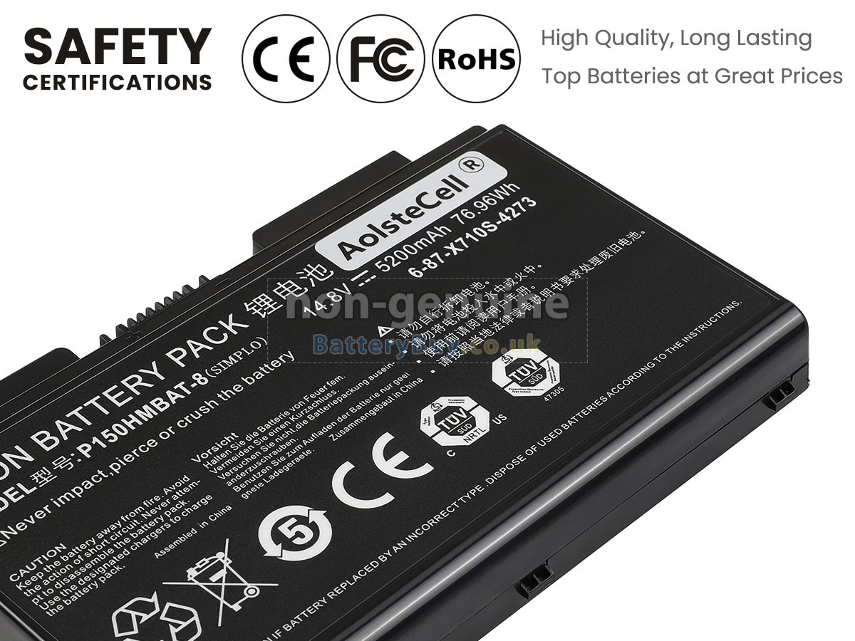 BatteryBuy.co.uk is your best choice of high quality Clevo laptop batteries! The brand new 76.96Wh(8 cells) replacement Clevo 6-87-X710S-4J72 Li-ion battery is made with superior quality cells from Samsung, Panasonic and LG to ensure the best performance. Clevo 6-87-X710S-4J72 battery case is made of non-flammable and durable plastic, which is fire-retarded and non-perishable when dropped from low heights.