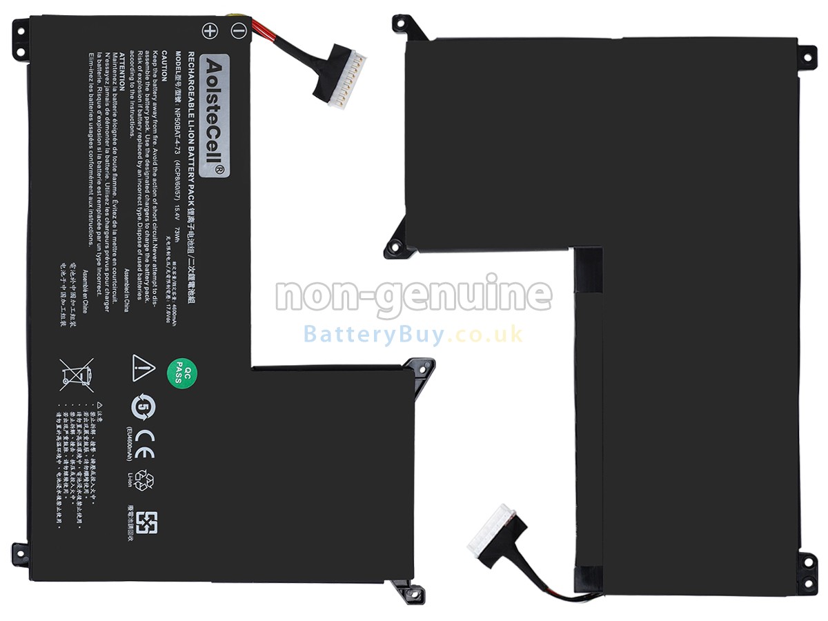 BatteryBuy.co.uk is your best choice of high quality Clevo laptop batteries! The brand new 73Wh(4 cells) replacement Clevo SCHENKER XMG NEO 17-E23 (NP70SNE) Li-Polymer battery is made with superior quality cells from Samsung, Panasonic and LG to ensure the best performance. Clevo SCHENKER XMG NEO 17-E23 (NP70SNE) battery case is made of non-flammable and durable plastic, which is fire-retarded and non-perishable when dropped from low heights.