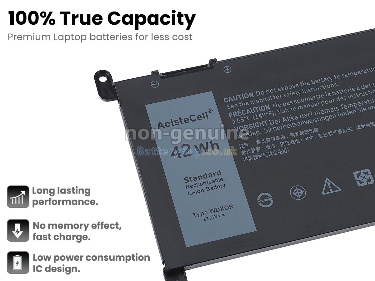 BatteryBuy.co.uk is your best choice of high quality Dell laptop batteries! The brand new 42Wh(3 cells) replacement Dell Latitude 3310 Li-Polymer battery is made with superior quality cells from Samsung, Panasonic and LG to ensure the best performance. Dell Latitude 3310 battery case is made of non-flammable and durable plastic, which is fire-retarded and non-perishable when dropped from low heights.