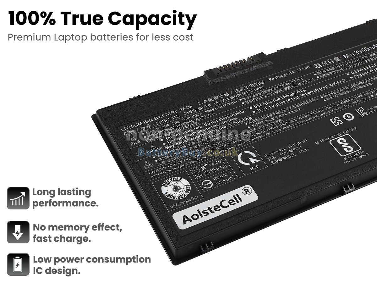 BatteryBuy.co.uk is your best choice of high quality Fujitsu laptop batteries! The brand new 60Wh(4 cells) replacement Fujitsu 34076465 Li-Polymer battery is made with superior quality cells from Samsung, Panasonic and LG to ensure the best performance. Fujitsu 34076465 battery case is made of non-flammable and durable plastic, which is fire-retarded and non-perishable when dropped from low heights.