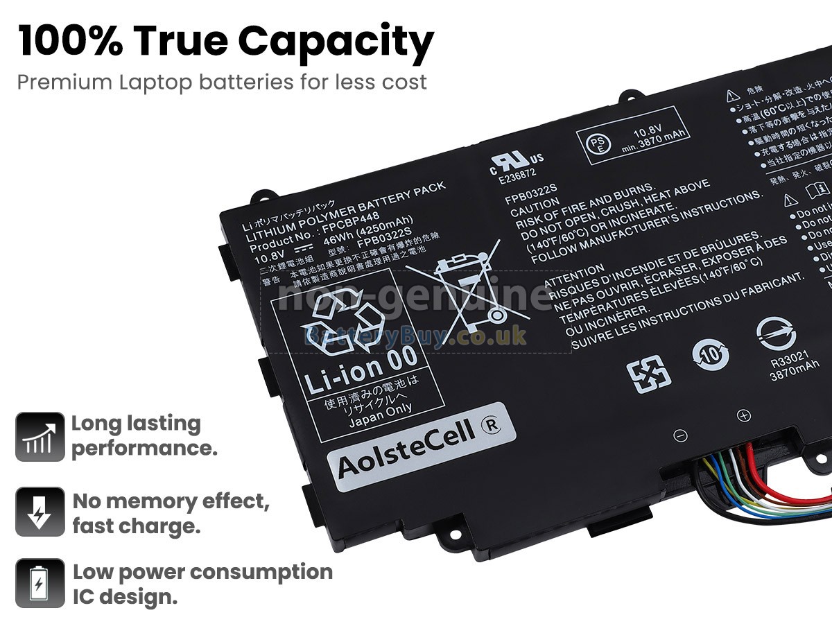 BatteryBuy.co.uk is your best choice of high quality Fujitsu laptop batteries! The brand new 46Wh(3 cells) replacement Fujitsu Stylistic Q736 Li-Polymer battery is made with superior quality cells from Samsung, Panasonic and LG to ensure the best performance. Fujitsu Stylistic Q736 battery case is made of non-flammable and durable plastic, which is fire-retarded and non-perishable when dropped from low heights.