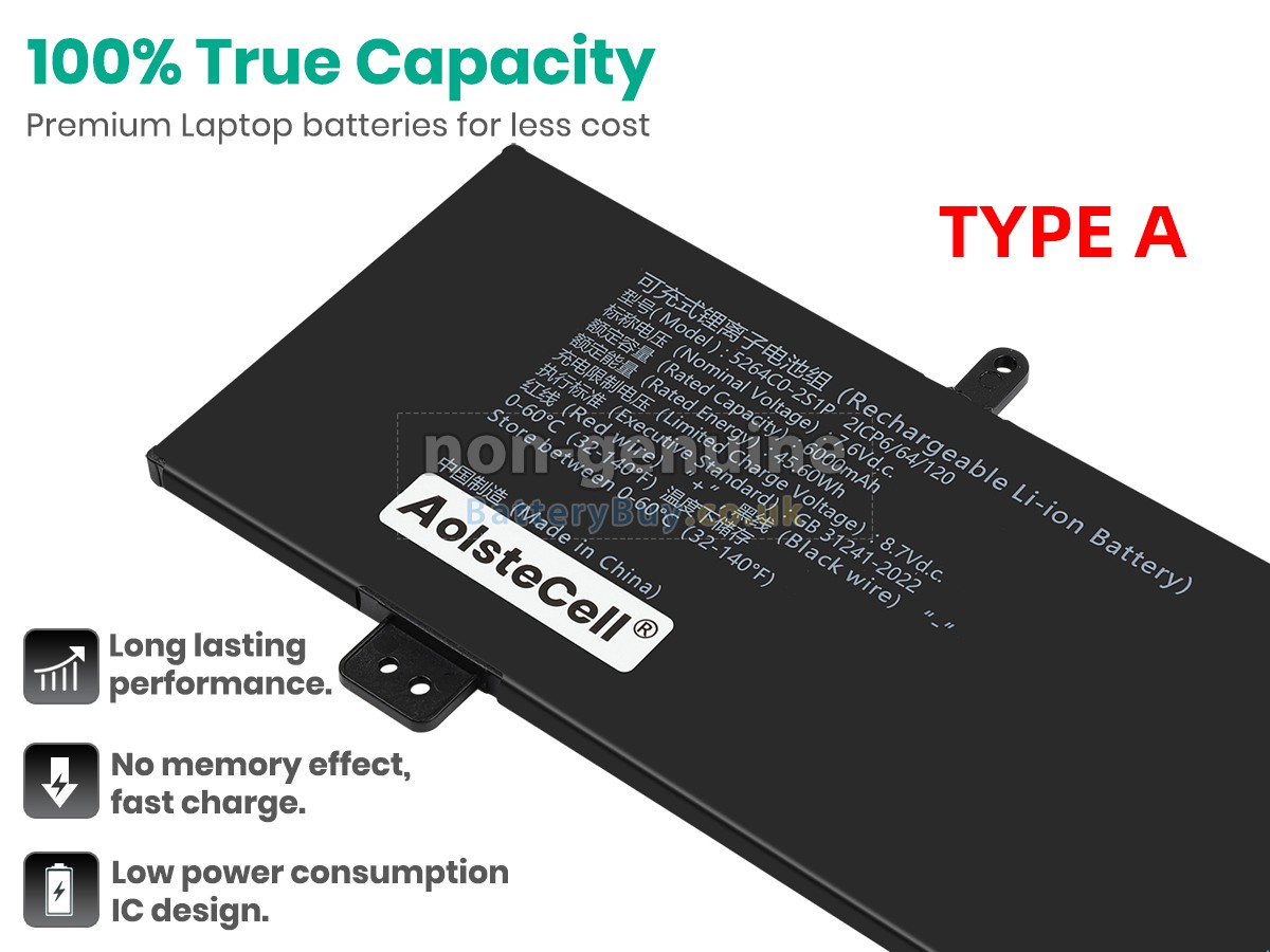 BatteryBuy.co.uk is your best choice of high quality Haier laptop batteries! The brand new 45.6Wh(2 cells) replacement Haier 5264C0-2S1P Li-Polymer battery is made with superior quality cells from Samsung, Panasonic and LG to ensure the best performance. Haier 5264C0-2S1P battery case is made of non-flammable and durable plastic, which is fire-retarded and non-perishable when dropped from low heights.