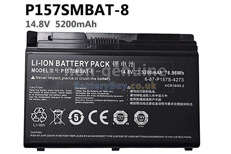 BatteryBuy.co.uk is your best choice of high quality Hasee laptop batteries! The brand new 5200mAh(8 cells) replacement Hasee P157SMBAT-8 Li-ion battery is made with superior quality cells from Samsung, Panasonic and LG to ensure the best performance. Hasee P157SMBAT-8 battery case is made of non-flammable and durable plastic, which is fire-retarded and non-perishable when dropped from low heights.