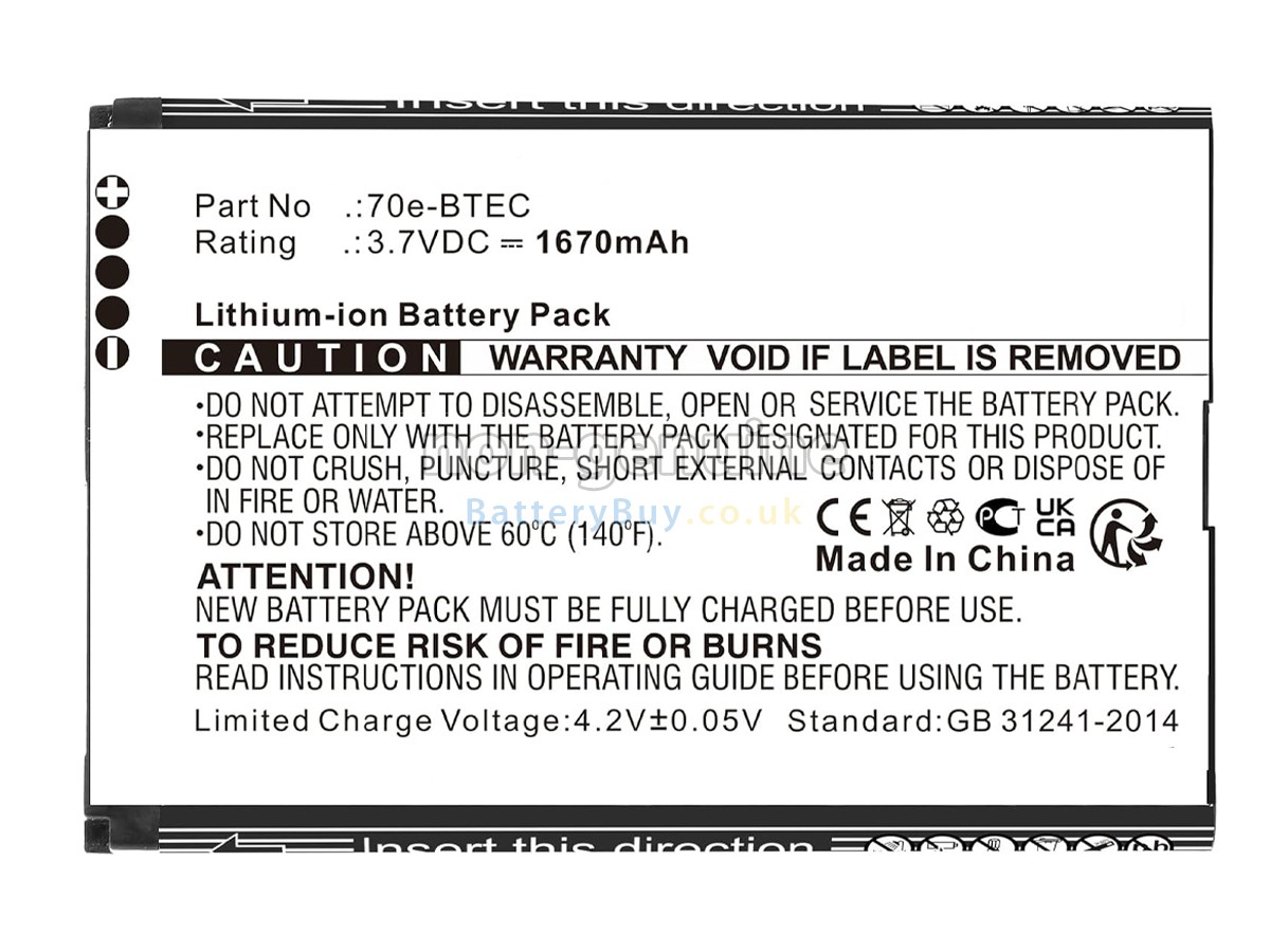 BatteryBuy.co.uk is your best choice of high quality Honeywell batteries! The brand new 3340mAh(1 cells) replacement Honeywell 60S-BATT-1 Li-ion battery is made with superior quality cells from Samsung, Panasonic and LG to ensure the best performance. Honeywell 60S-BATT-1 battery case is made of non-flammable and durable plastic, which is fire-retarded and non-perishable when dropped from low heights.