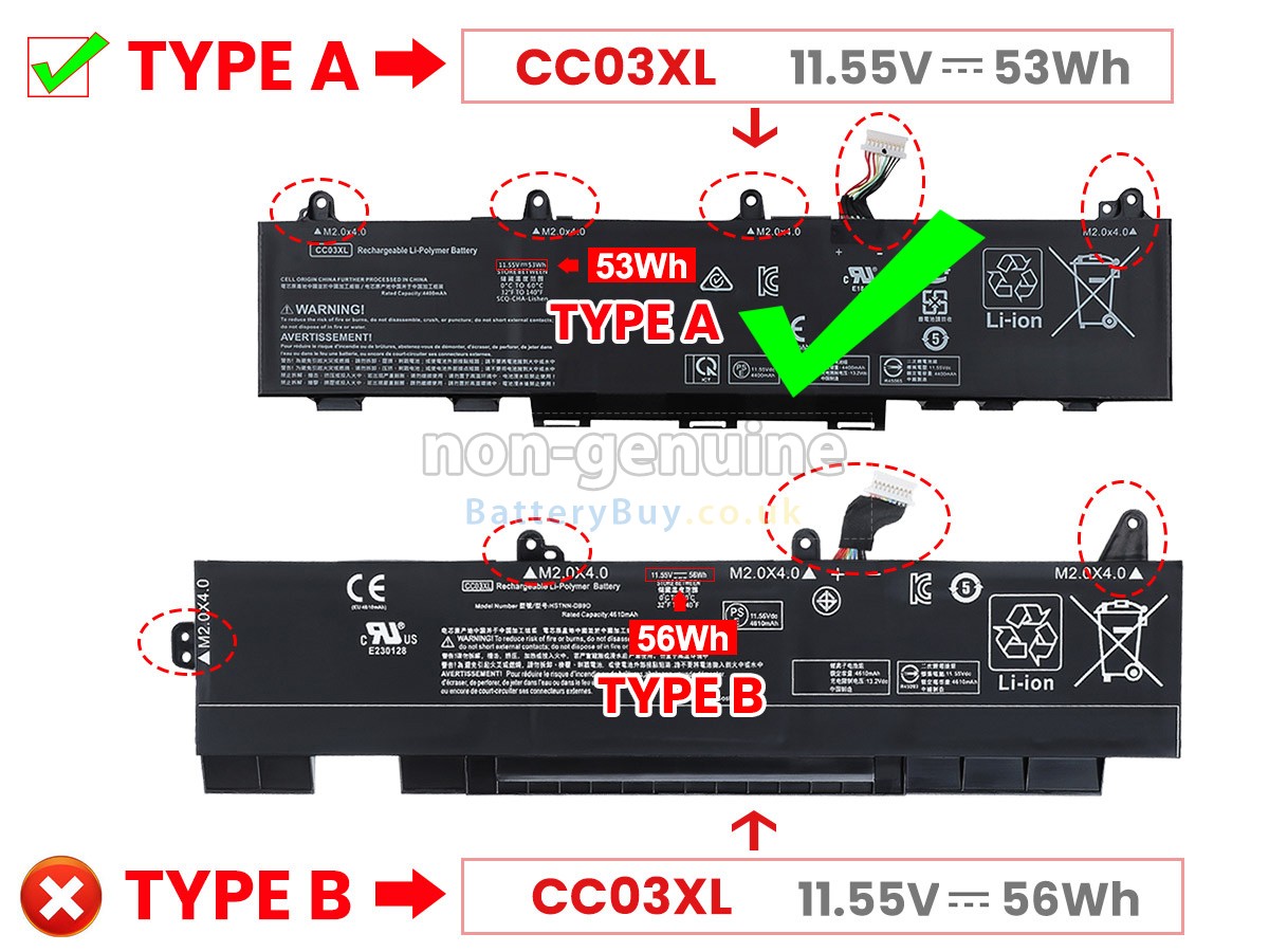 There are 2 types battery named "CC03XL", so before placing an order please open your laptop to check your old battery, ensure it is same to our product. - SKUBBU7105