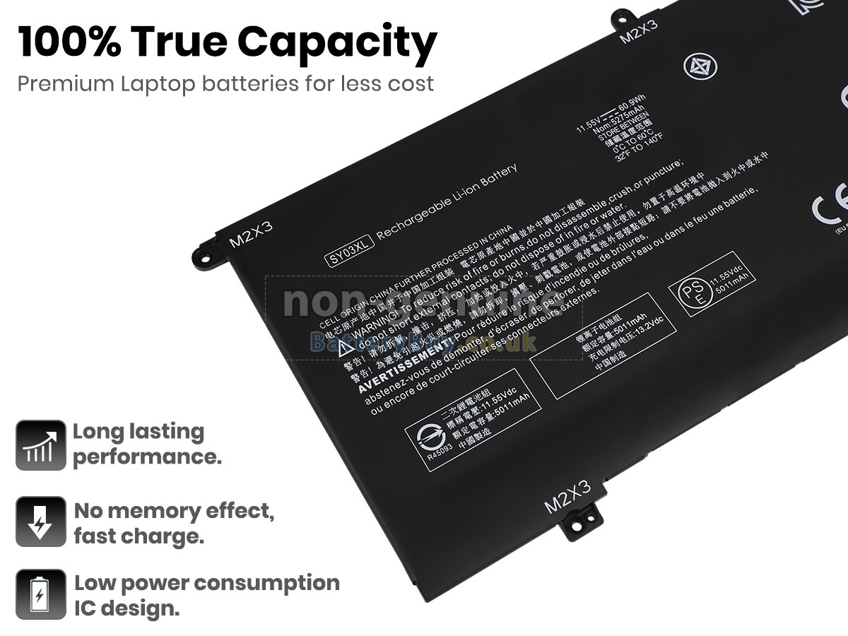BatteryBuy.co.uk is your best choice of high quality HP laptop batteries! The brand new 60.9Wh(3 cells) replacement HP Chromebook X360 14-DA0006NF Li-Polymer battery is made with superior quality cells from Samsung, Panasonic and LG to ensure the best performance. HP Chromebook X360 14-DA0006NF battery case is made of non-flammable and durable plastic, which is fire-retarded and non-perishable when dropped from low heights.