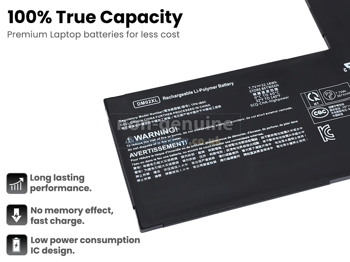 BatteryBuy.co.uk is your best choice of high quality HP laptop batteries! The brand new 32.18Wh(2 cells) replacement HP DM02XL Li-Polymer battery is made with superior quality cells from Samsung, Panasonic and LG to ensure the best performance. HP DM02XL battery case is made of non-flammable and durable plastic, which is fire-retarded and non-perishable when dropped from low heights.