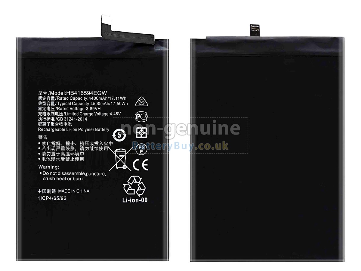 All our high quality replacement batteries for Huawei HB416594EGW come with a 1-year warranty. Warranty is applicable if the buyer has installed the battery properly in the device and has treated the battery correctly.