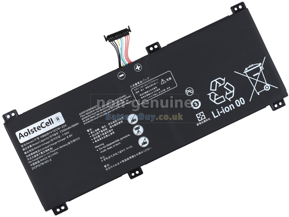 BatteryBuy.co.uk is your best choice of high quality Huawei laptop batteries! The brand new 56Wh(4 cells) replacement Huawei HB6081V1ECW-22A Li-Polymer battery is made with superior quality cells from Samsung, Panasonic and LG to ensure the best performance. Huawei HB6081V1ECW-22A battery case is made of non-flammable and durable plastic, which is fire-retarded and non-perishable when dropped from low heights.