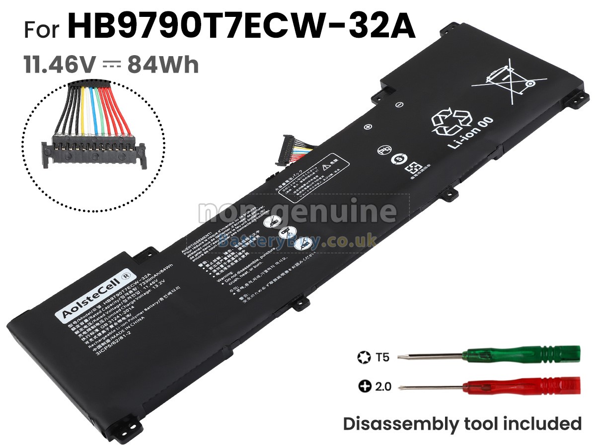 BatteryBuy.co.uk is your best choice of high quality Huawei laptop batteries! The brand new 84Wh(6 cells) replacement Huawei MATEBOOK 16S I7 Li-Polymer battery is made with superior quality cells from Samsung, Panasonic and LG to ensure the best performance. Huawei MATEBOOK 16S I7 battery case is made of non-flammable and durable plastic, which is fire-retarded and non-perishable when dropped from low heights.