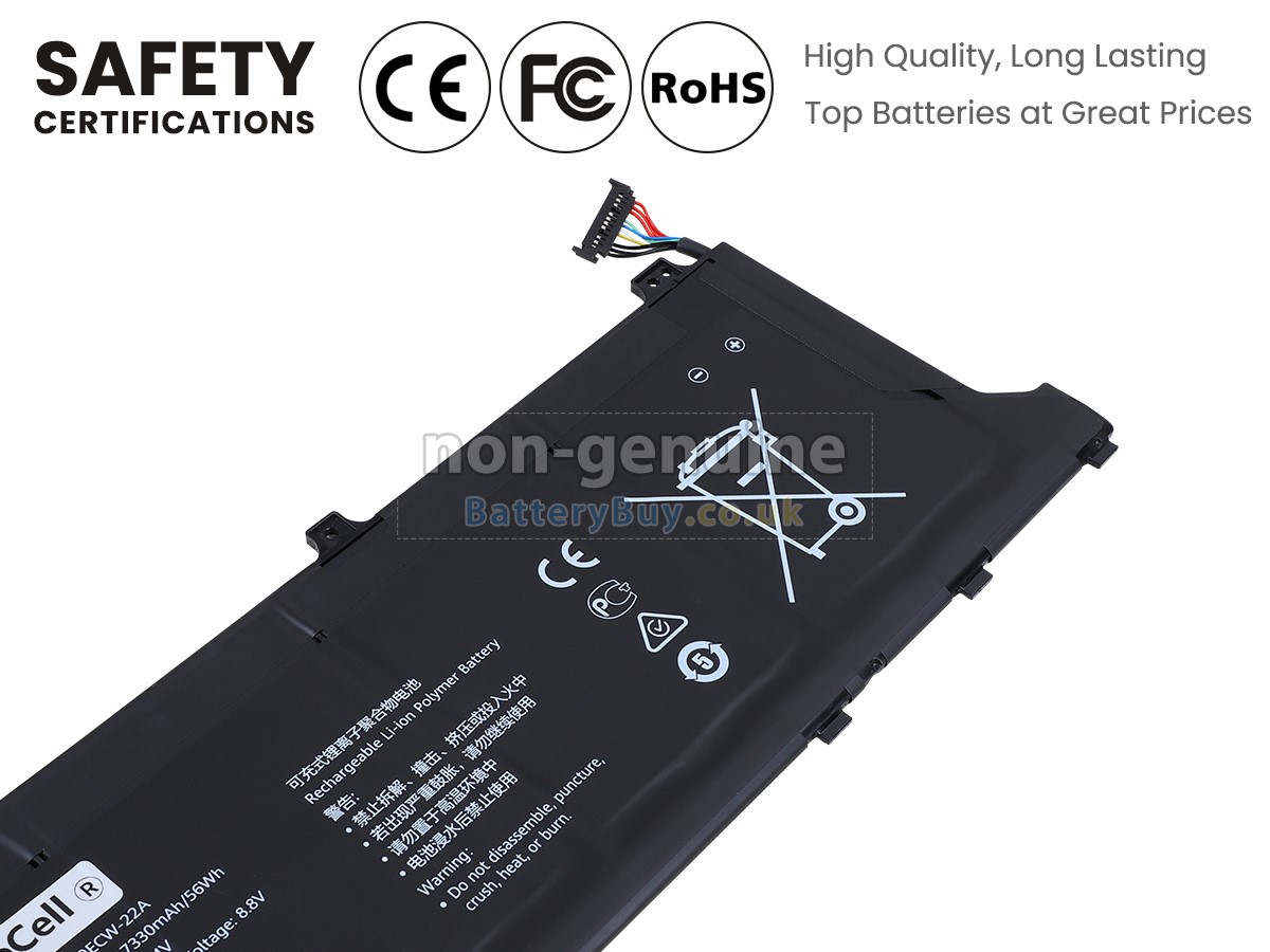BatteryBuy.co.uk is your best choice of high quality Huawei laptop batteries! The brand new 56Wh(4 cells) replacement Huawei NDR-WFH9HN Li-Polymer battery is made with superior quality cells from Samsung, Panasonic and LG to ensure the best performance. Huawei NDR-WFH9HN battery case is made of non-flammable and durable plastic, which is fire-retarded and non-perishable when dropped from low heights.