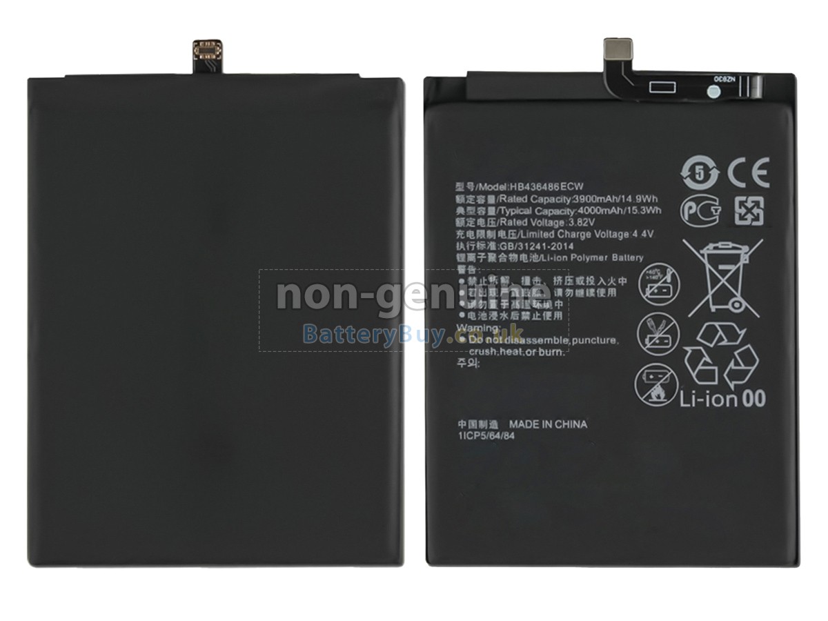 BatteryBuy.co.uk is your best choice of high quality Huawei batteries! The brand new 3900mAh(1 cells) replacement Huawei NOVA 5I PRO Li-Polymer battery is made with superior quality cells from Samsung, Panasonic and LG to ensure the best performance. Huawei NOVA 5I PRO battery case is made of non-flammable and durable plastic, which is fire-retarded and non-perishable when dropped from low heights.