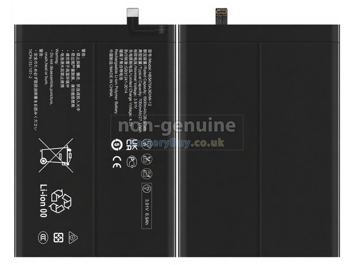BatteryBuy.co.uk is your best choice of high quality Huawei batteries! The brand new 7000mAh(1 cells) replacement Huawei NOVA Y91 STG-LX2 Li-ion battery is made with superior quality cells from Samsung, Panasonic and LG to ensure the best performance. Huawei NOVA Y91 STG-LX2 battery case is made of non-flammable and durable plastic, which is fire-retarded and non-perishable when dropped from low heights.