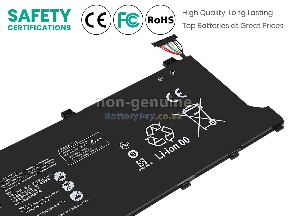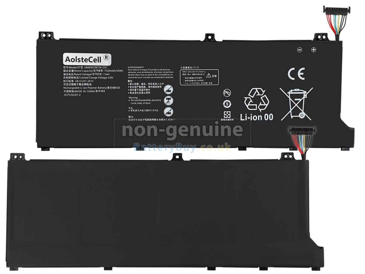 BatteryBuy.co.uk is your best choice of high quality Huawei laptop batteries! The brand new 56Wh(4 cells) replacement Huawei WFP9 Li-Polymer battery is made with superior quality cells from Samsung, Panasonic and LG to ensure the best performance. Huawei WFP9 battery case is made of non-flammable and durable plastic, which is fire-retarded and non-perishable when dropped from low heights.