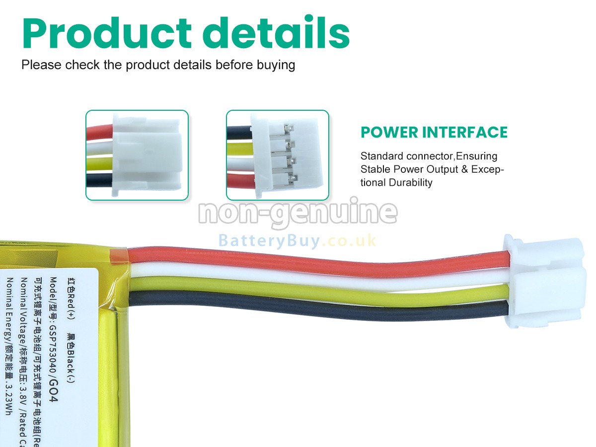 BatteryBuy.co.uk is your best choice of high quality JBL batteries for speakers! The brand new 3.23Wh(1 cells) replacement JBL GSP753040 Li-ion battery is made with superior quality cells from Samsung, Panasonic and LG to ensure the best performance. JBL GSP753040 battery case is made of non-flammable and durable plastic, which is fire-retarded and non-perishable when dropped from low heights.
