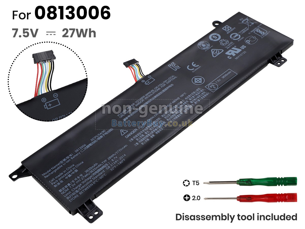 BatteryBuy.co.uk is your best choice of high quality Lenovo laptop batteries! The brand new 27Wh(2 cells) replacement Lenovo IdeaPad 130S-11IGM Li-Polymer battery is made with superior quality cells from Samsung, Panasonic and LG to ensure the best performance. Lenovo IdeaPad 130S-11IGM battery case is made of non-flammable and durable plastic, which is fire-retarded and non-perishable when dropped from low heights.