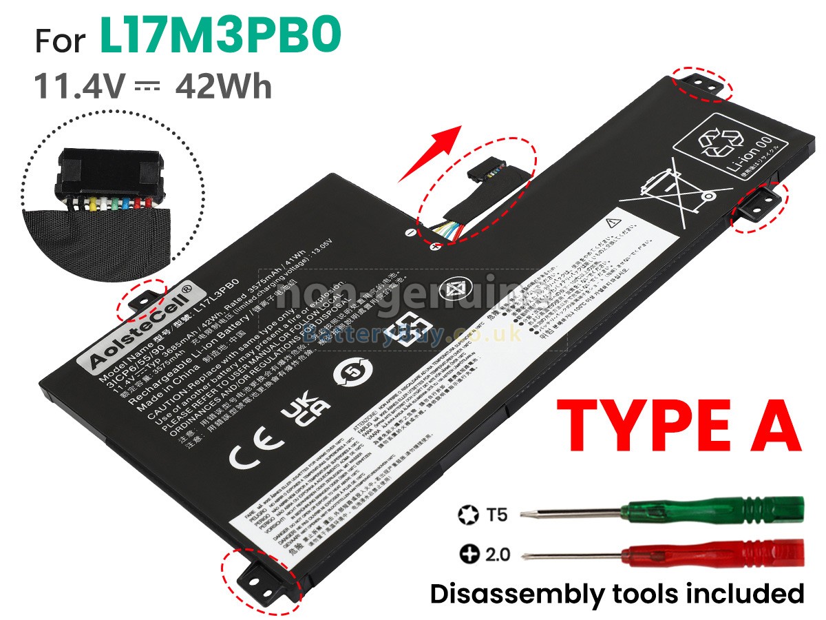 BatteryBuy.co.uk is your best choice of high quality Lenovo laptop batteries! The brand new 42Wh(3 cells) replacement Lenovo IdeaPad 3 CB-14IGL05-82C10030CF Li-Polymer battery is made with superior quality cells from Samsung, Panasonic and LG to ensure the best performance. Lenovo IdeaPad 3 CB-14IGL05-82C10030CF battery case is made of non-flammable and durable plastic, which is fire-retarded and non-perishable when dropped from low heights.