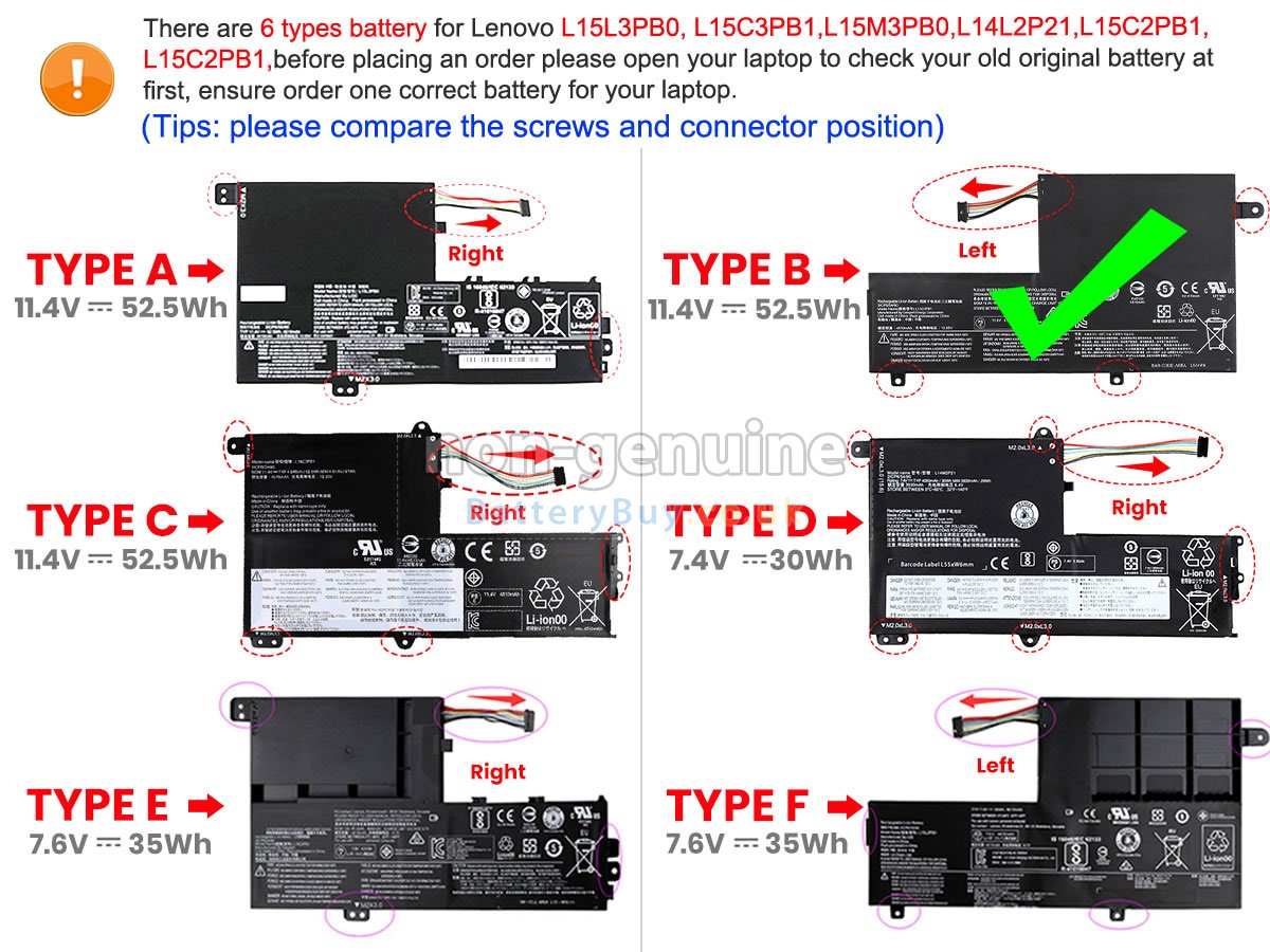 A: First, find out your old battery part number (e.g. 'Lenovo IdeaPad 330S-15ARR-81FB0004LM') or the model name of laptop and then match with our product compatibility table. Second, please compare your old battery with our product images to make sure their shapes are the same. Lastly, check the voltage (rating) is the same as the old one. For more details please click How to find one correct battery for my laptop?