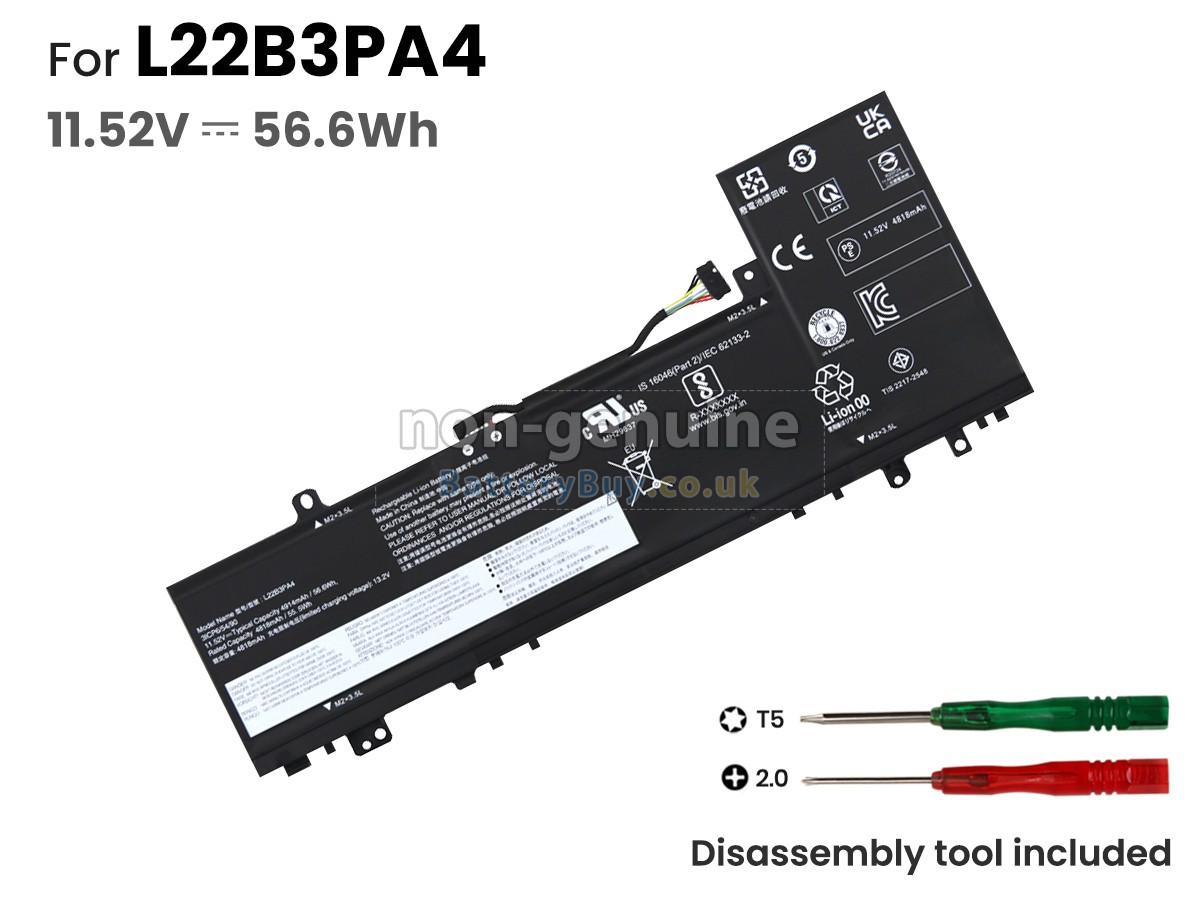 BatteryBuy.co.uk is your best choice of high quality Lenovo laptop batteries! The brand new 47Wh(3 cells) replacement Lenovo IdeaPad SLIM 5 16ABR8-82XG0008MJ Li-ion battery is made with superior quality cells from Samsung, Panasonic and LG to ensure the best performance. Lenovo IdeaPad SLIM 5 16ABR8-82XG0008MJ battery case is made of non-flammable and durable plastic, which is fire-retarded and non-perishable when dropped from low heights.